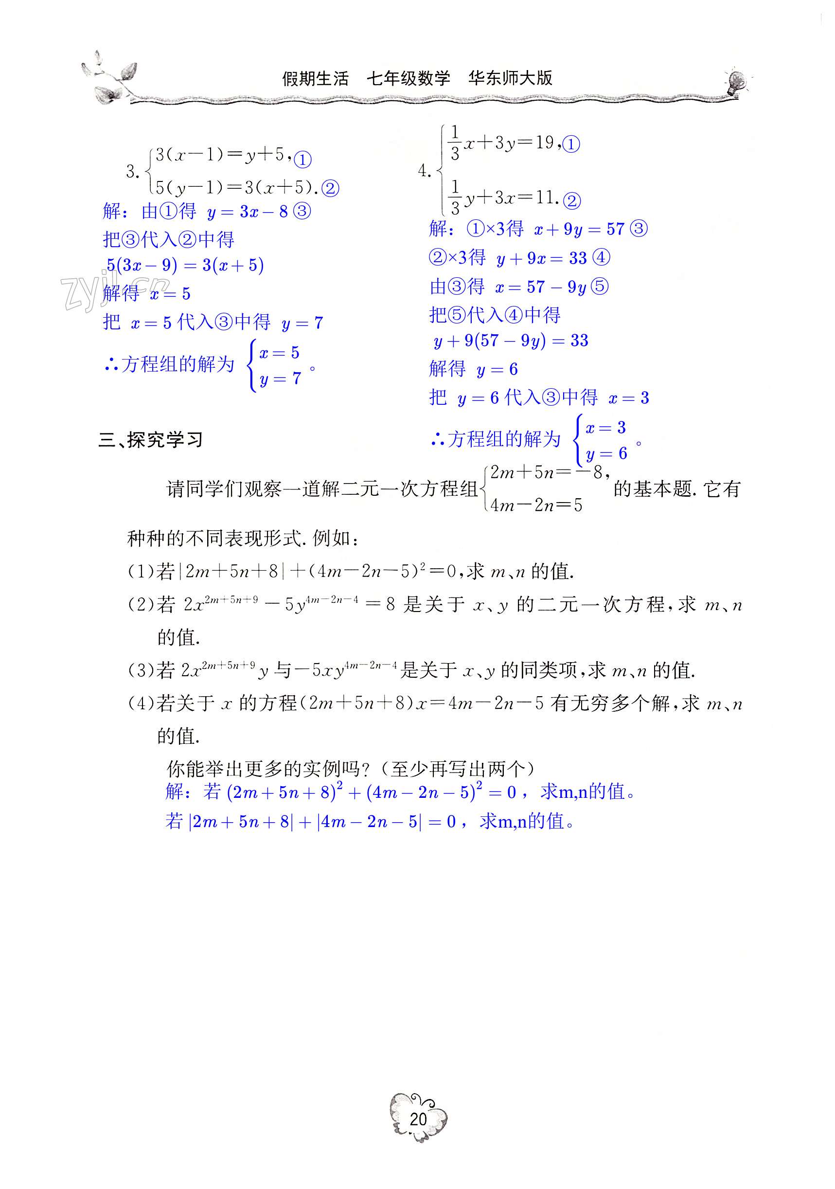 注:目前有些书本章节名称可能整理的还不是很完善,但都是按照顺序排列的,请同学们按照顺序仔细查找。练习册 2022年新课堂假期生活暑假用书七年级数学华师大版 答案主要是用来给同学们做完题方便对答案用的,请勿直接抄袭。