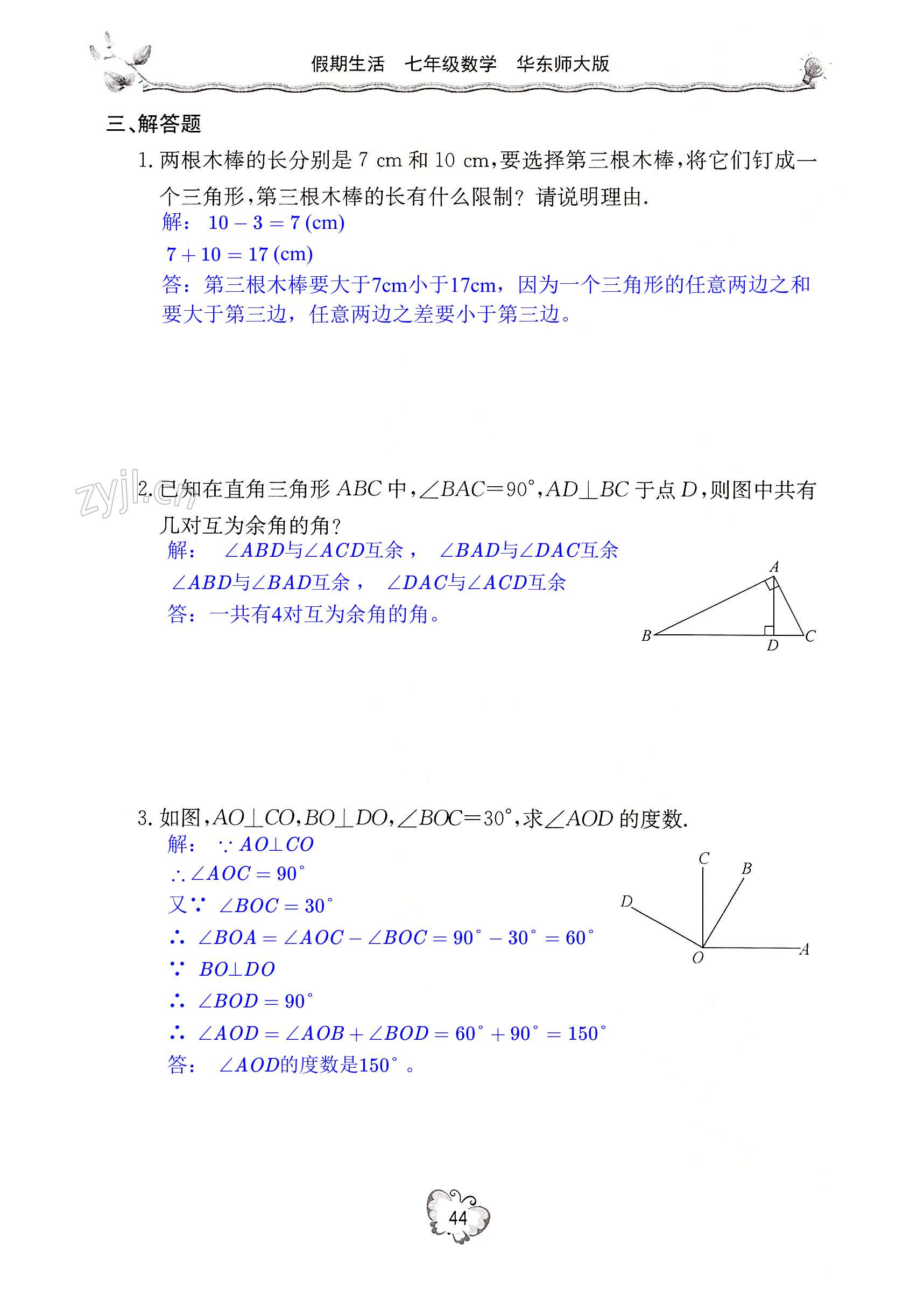 注:目前有些书本章节名称可能整理的还不是很完善,但都是按照顺序排列的,请同学们按照顺序仔细查找。练习册 2022年新课堂假期生活暑假用书七年级数学华师大版 答案主要是用来给同学们做完题方便对答案用的,请勿直接抄袭。