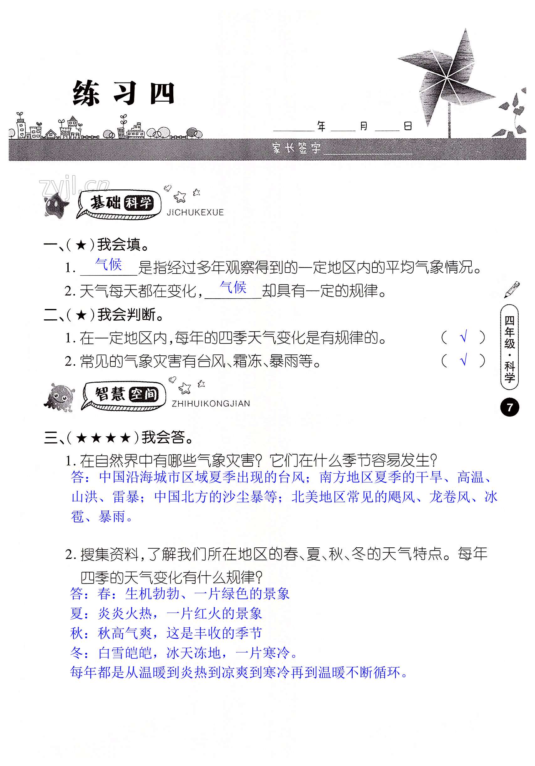 2022年Happy暑假作业快乐暑假四年级科学苏教版武汉大学出版社