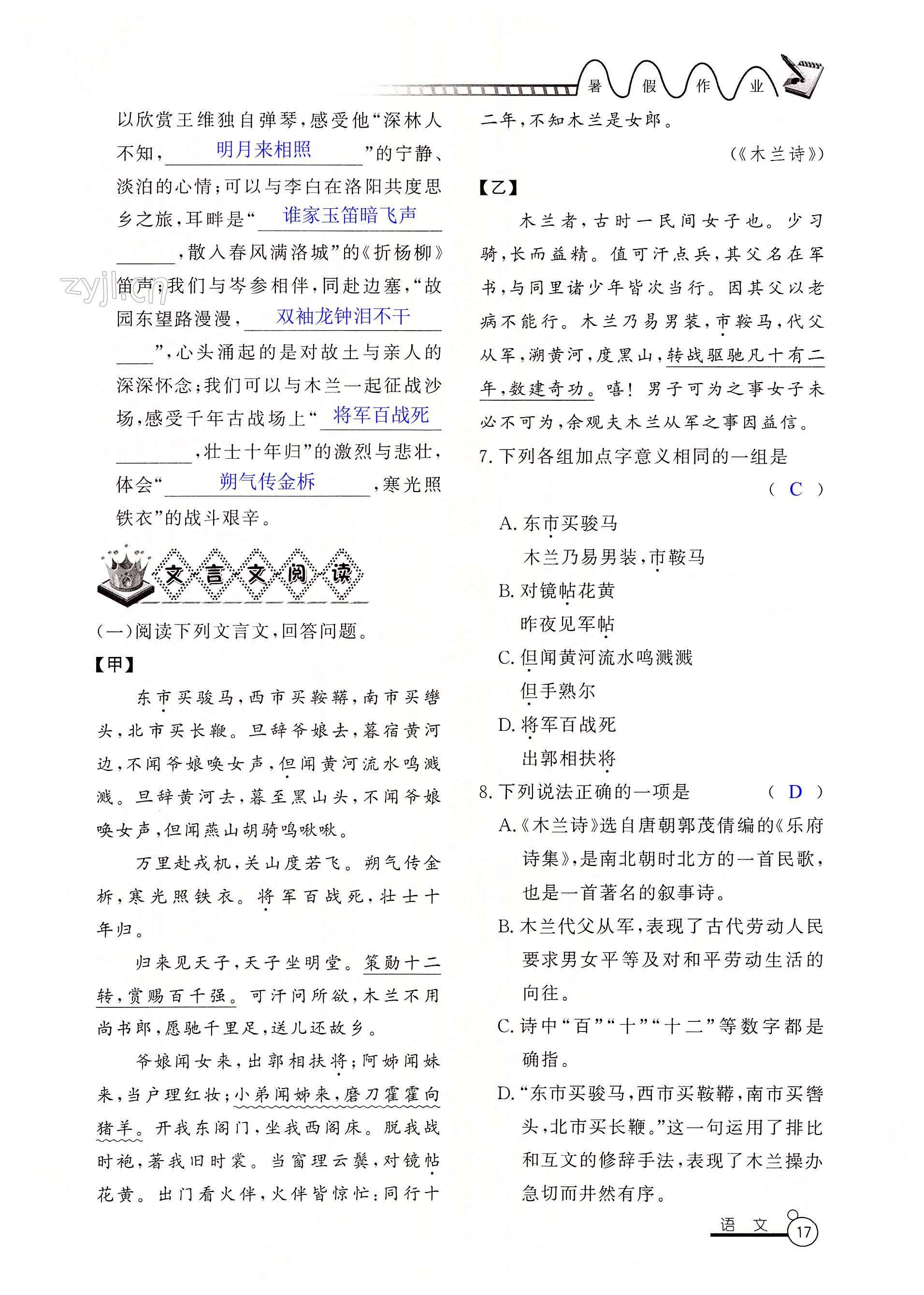注:目前有些书本章节名称可能整理的还不是很完善,但都是按照顺序排列的,请同学们按照顺序仔细查找。练习册 2022年暑假作业七年级山东美术出版社 答案主要是用来给同学们做完题方便对答案用的,请勿直接抄袭。