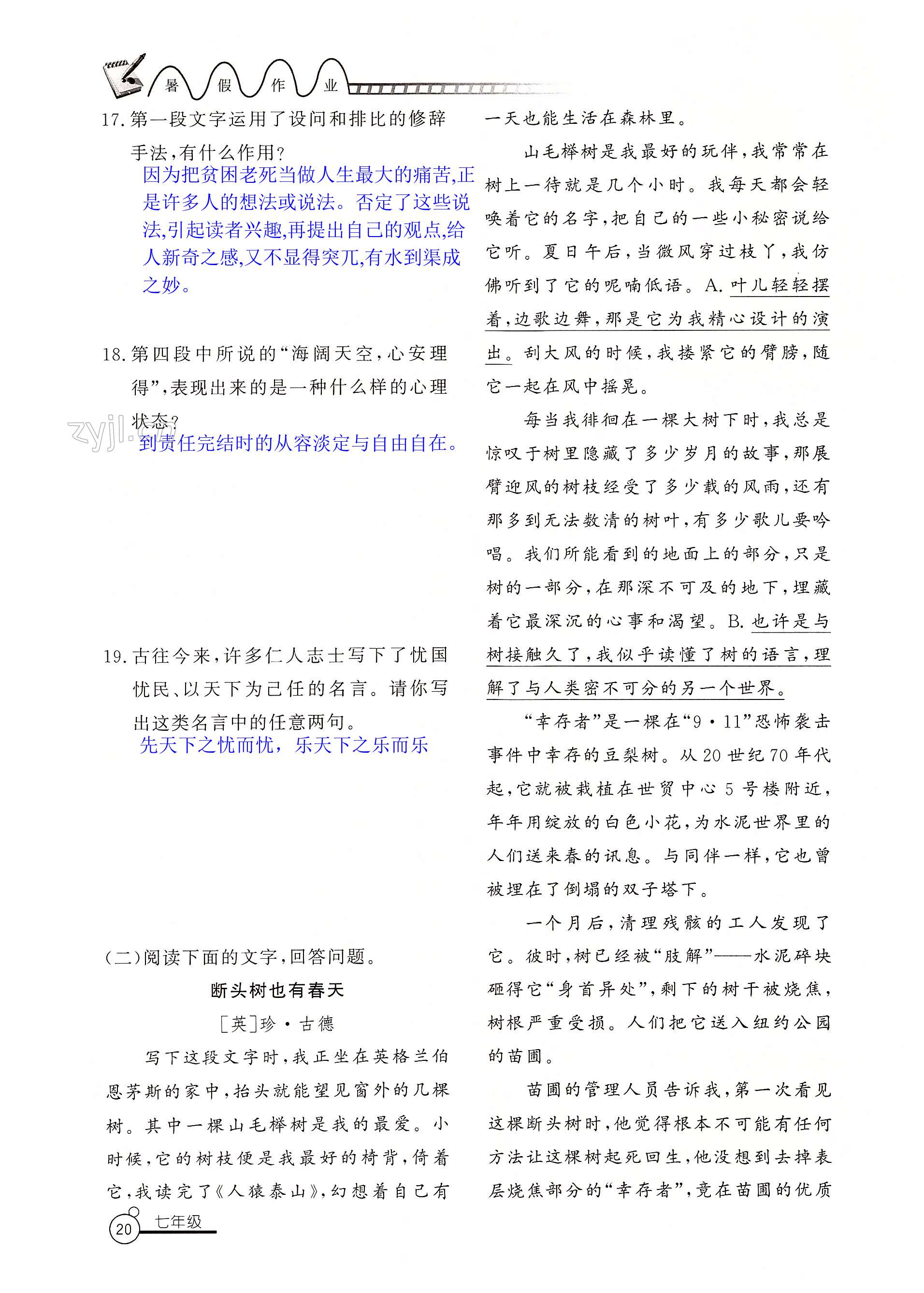 2022年暑假作业七年级山东美术出版社
