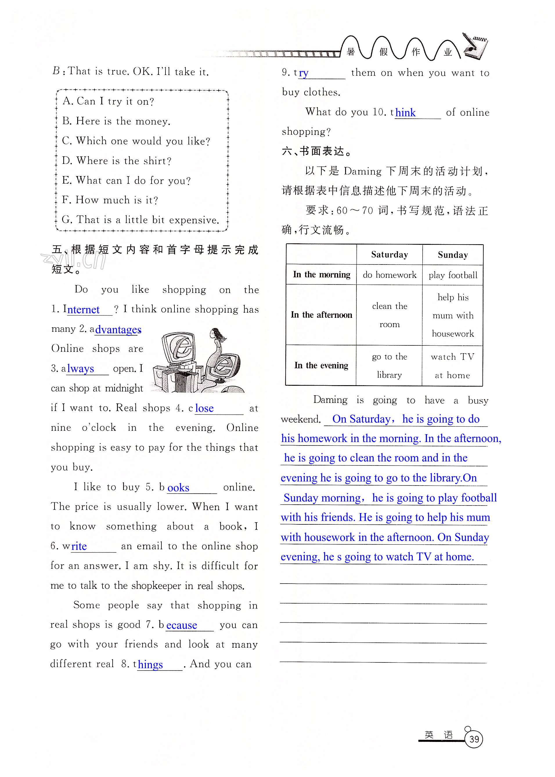 2022年暑假作业七年级山东美术出版社