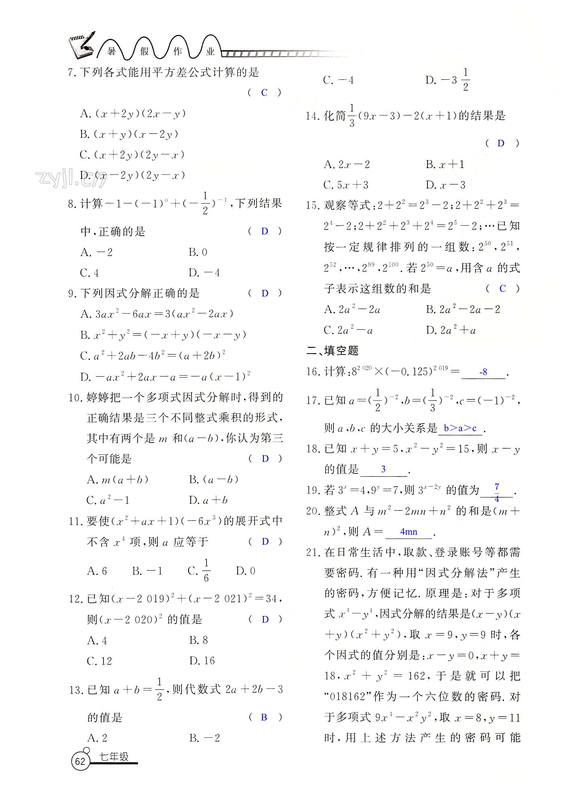 注:目前有些书本章节名称可能整理的还不是很完善,但都是按照顺序排列的,请同学们按照顺序仔细查找。练习册 2022年暑假作业七年级山东美术出版社 答案主要是用来给同学们做完题方便对答案用的,请勿直接抄袭。