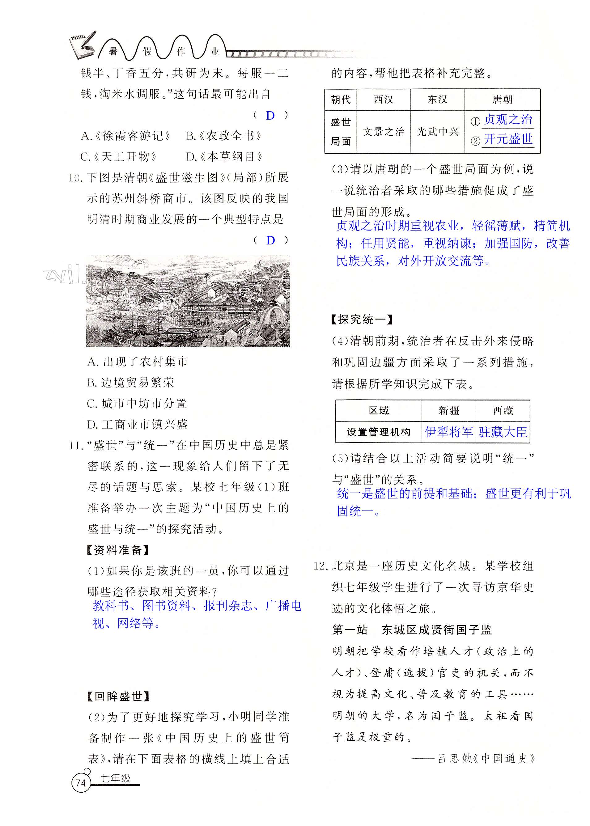 2022年暑假作业七年级山东美术出版社