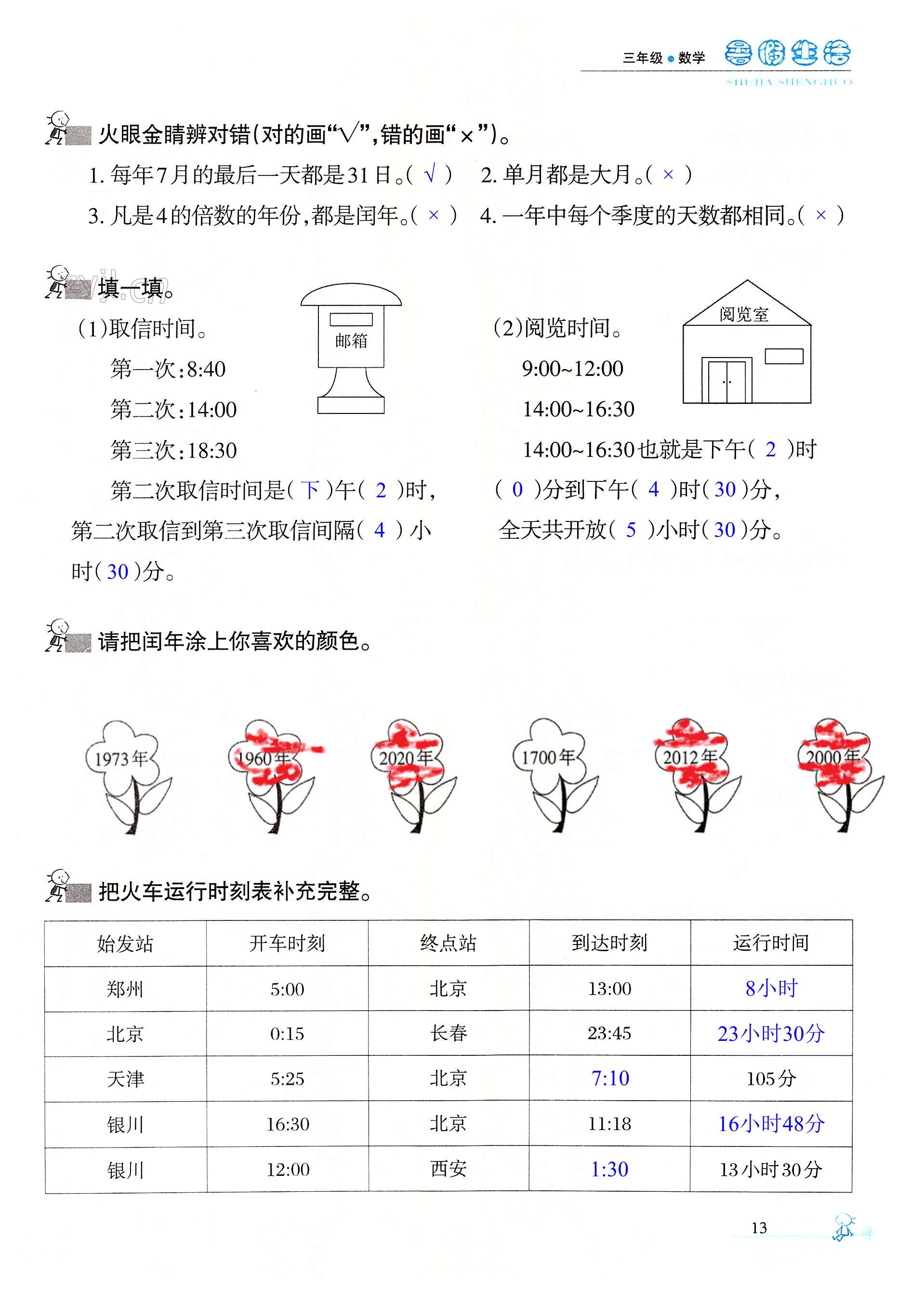 2022年暑假生活三年级数学人教版宁夏人民教育出版社