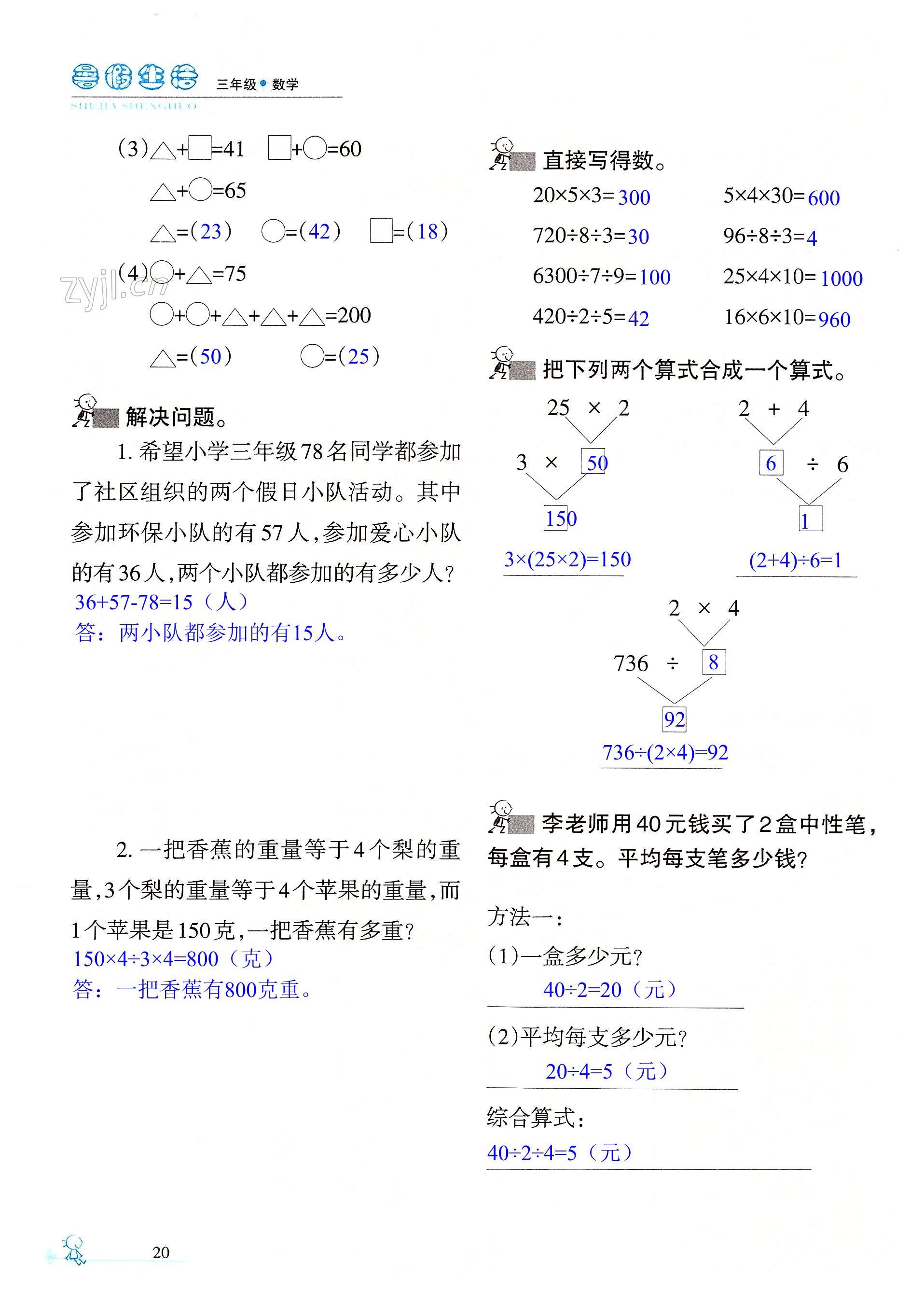 2022年暑假生活三年级数学人教版宁夏人民教育出版社