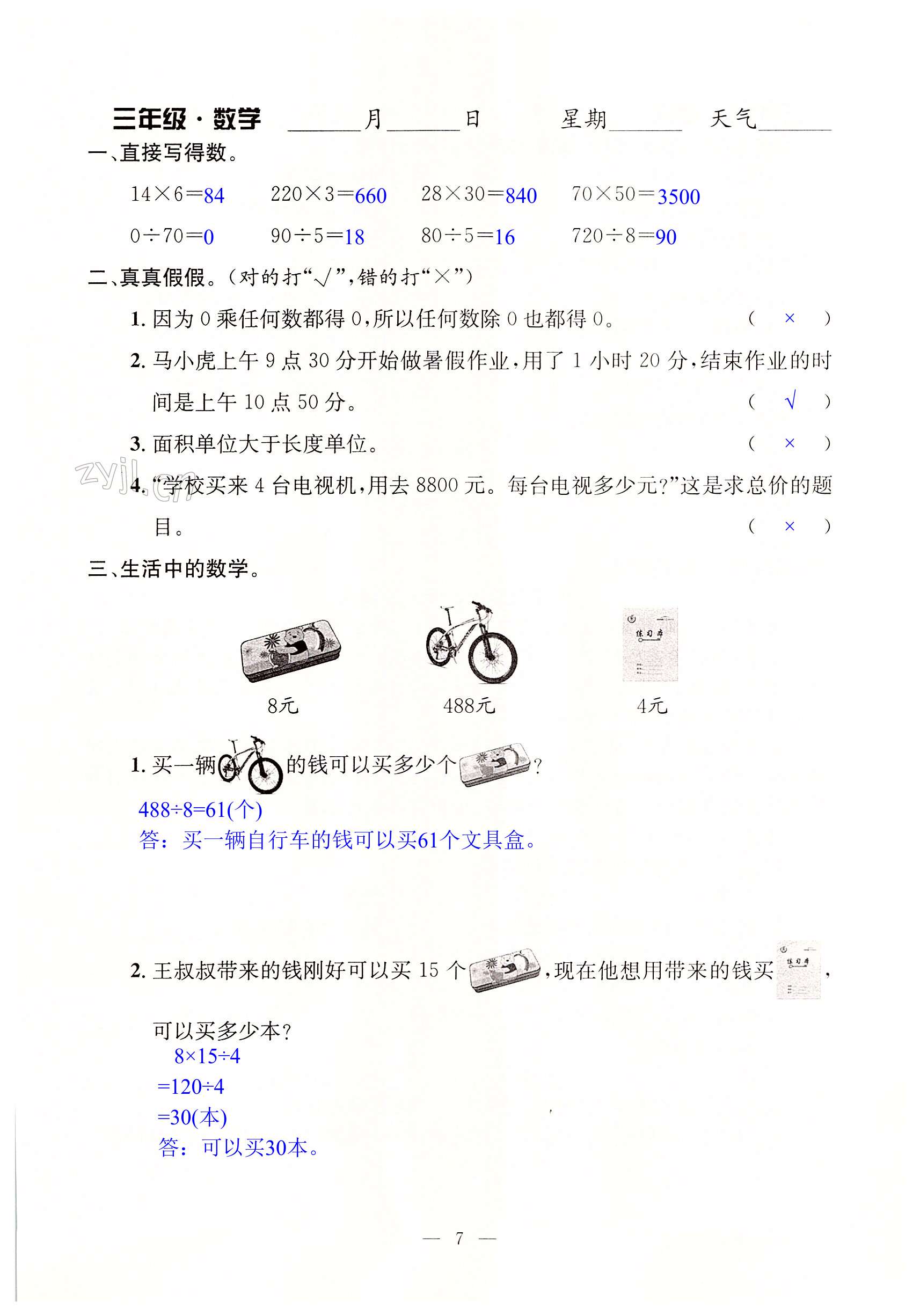 相关练习册答案