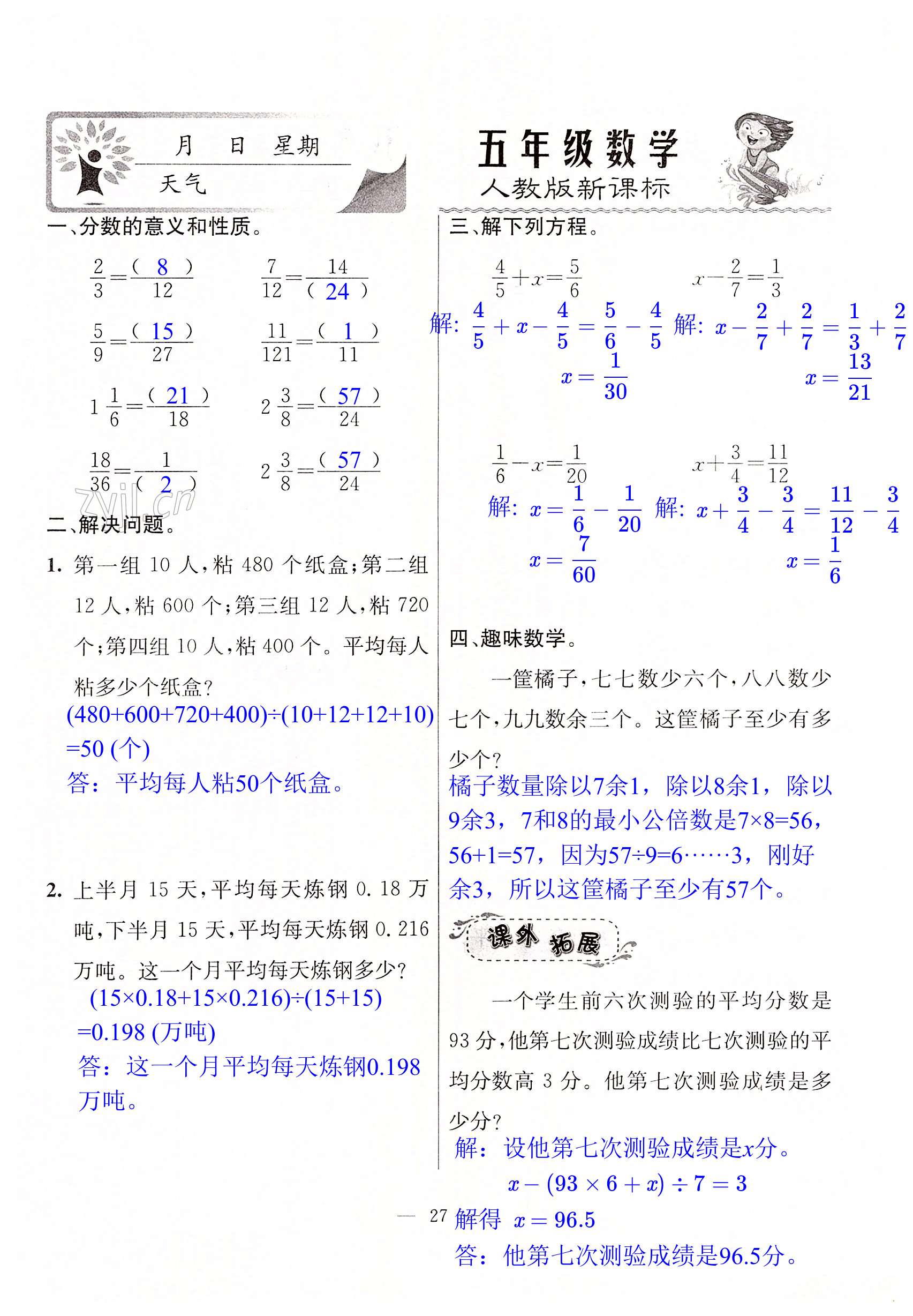 注:目前有些书本章节名称可能整理的还不是很完善,但都是按照顺序排列的,请同学们按照顺序仔细查找。练习册 2022年一诺书业暑假作业快乐假期五年级数学人教版云南美术出版社 答案主要是用来给同学们做完题方便对答案用的,请勿直接抄袭。