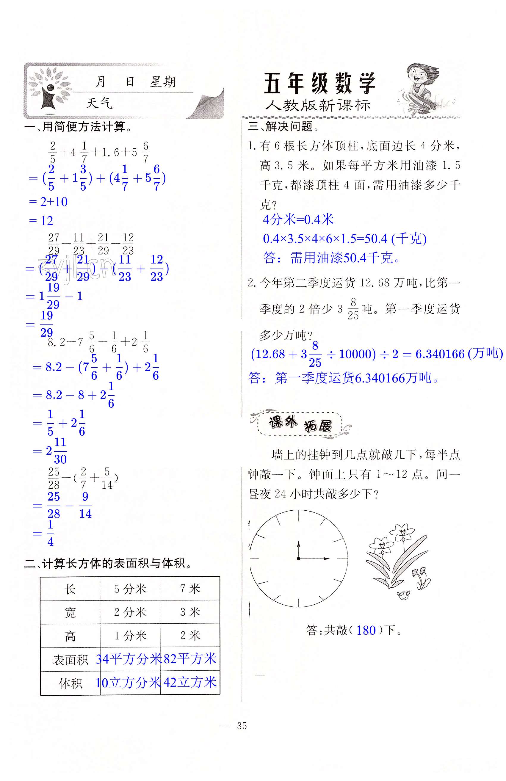 注:目前有些书本章节名称可能整理的还不是很完善,但都是按照顺序排列的,请同学们按照顺序仔细查找。练习册 2022年一诺书业暑假作业快乐假期五年级数学人教版云南美术出版社 答案主要是用来给同学们做完题方便对答案用的,请勿直接抄袭。