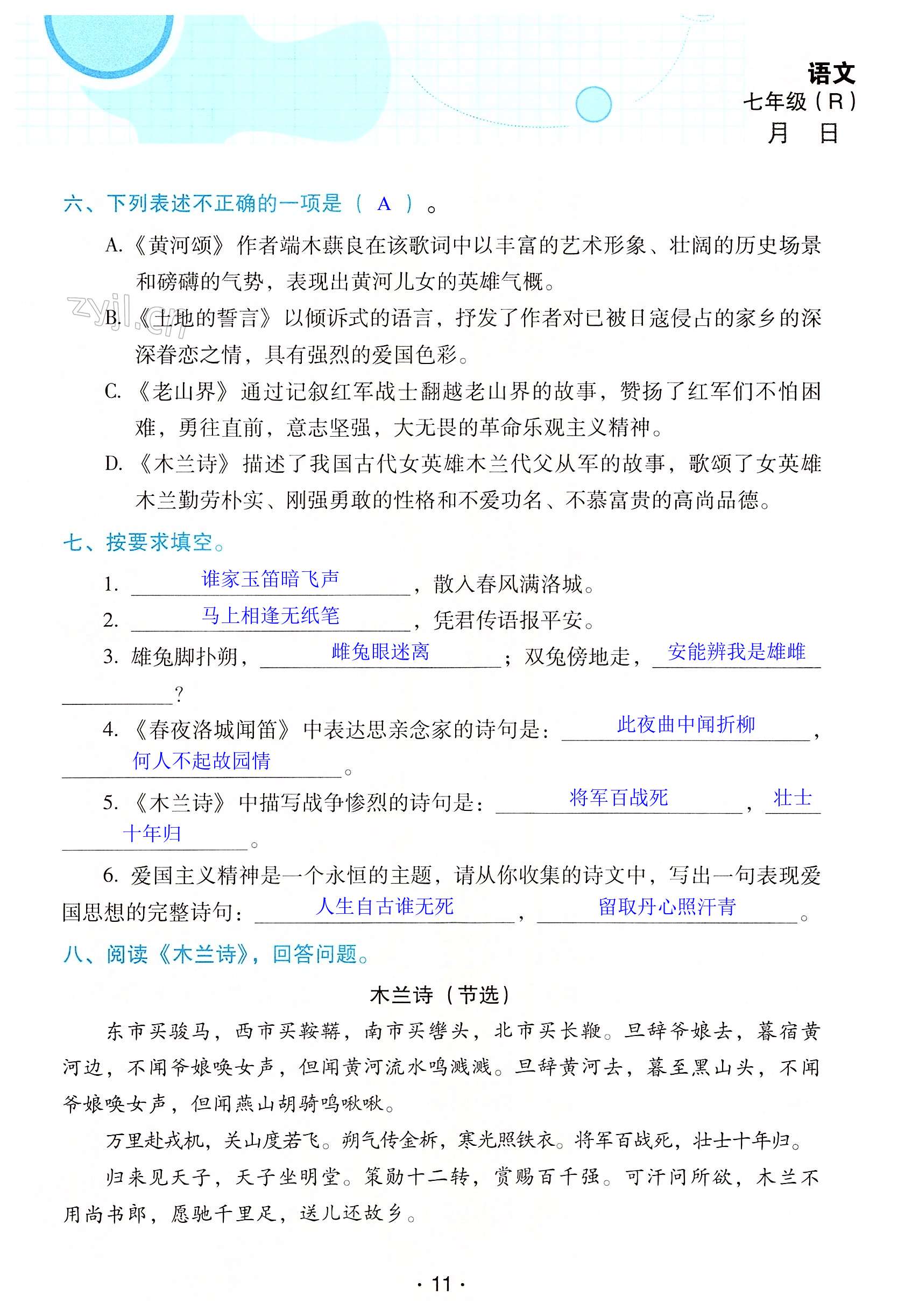 注:目前有些书本章节名称可能整理的还不是很完善,但都是按照顺序排列的,请同学们按照顺序仔细查找。练习册 2022年优佳学案暑假活动七年级语文人教版 答案主要是用来给同学们做完题方便对答案用的,请勿直接抄袭。