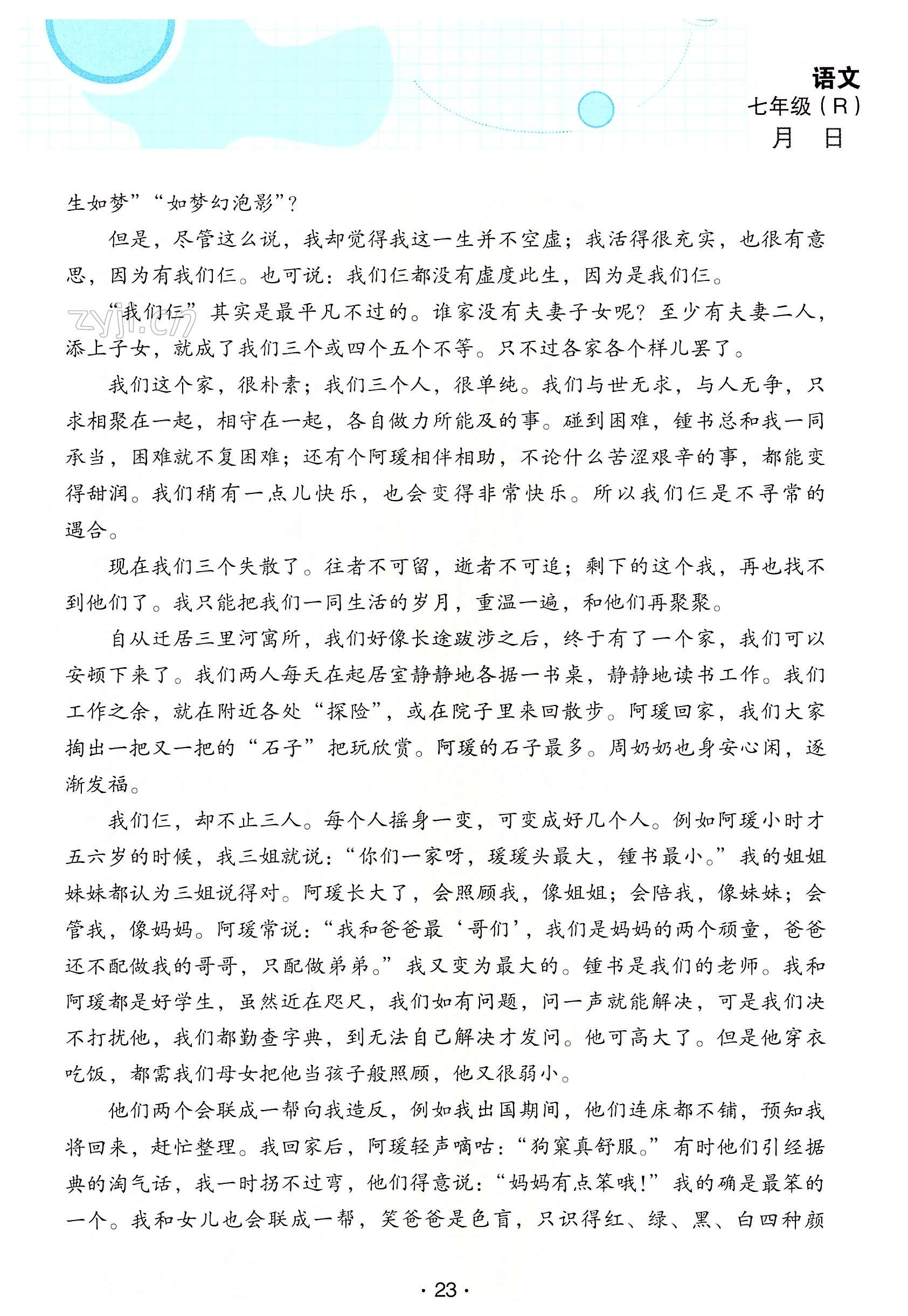 注:目前有些书本章节名称可能整理的还不是很完善,但都是按照顺序排列的,请同学们按照顺序仔细查找。练习册 2022年优佳学案暑假活动七年级语文人教版 答案主要是用来给同学们做完题方便对答案用的,请勿直接抄袭。
