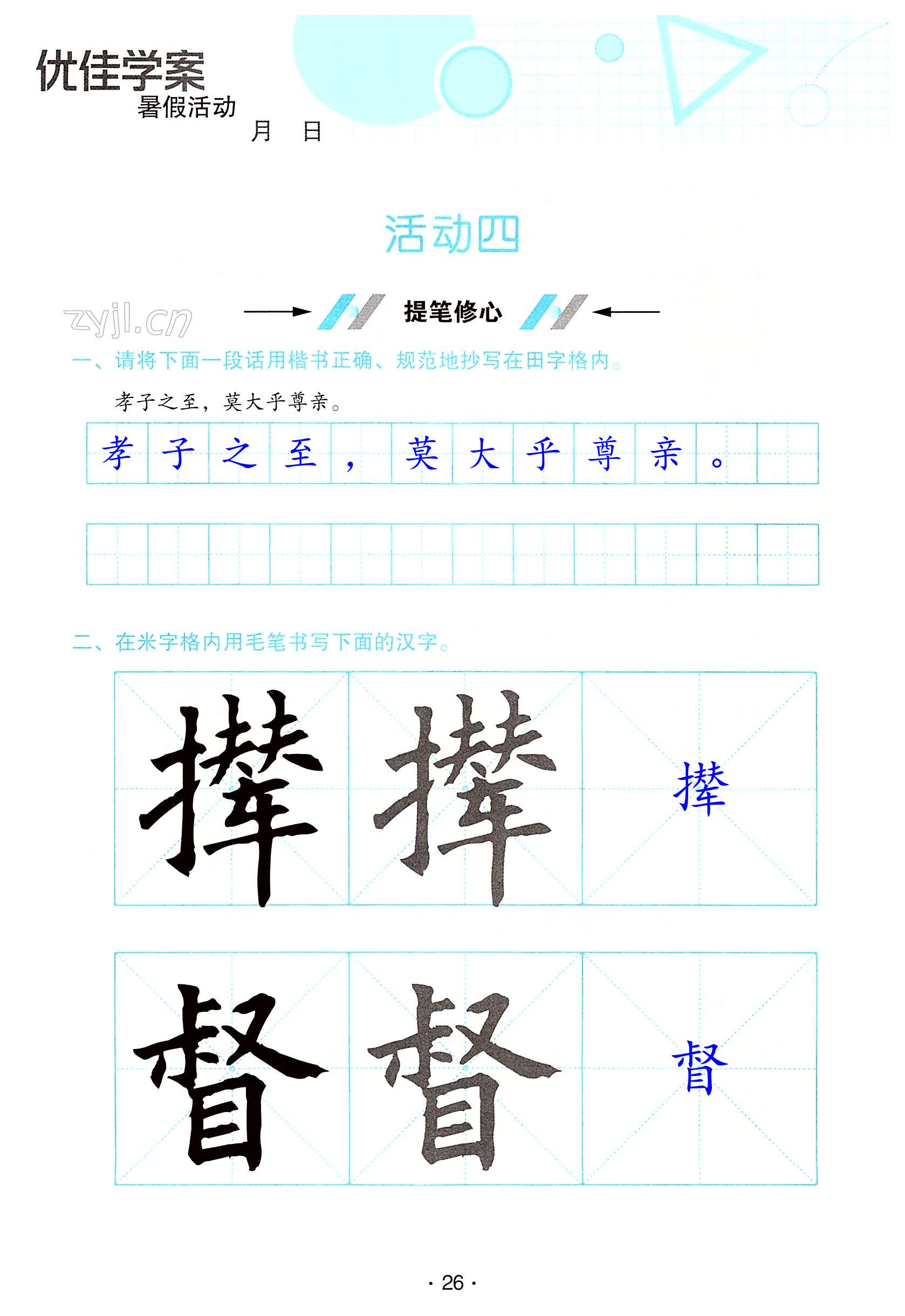 注:目前有些书本章节名称可能整理的还不是很完善,但都是按照顺序排列的,请同学们按照顺序仔细查找。练习册 2022年优佳学案暑假活动七年级语文人教版 答案主要是用来给同学们做完题方便对答案用的,请勿直接抄袭。