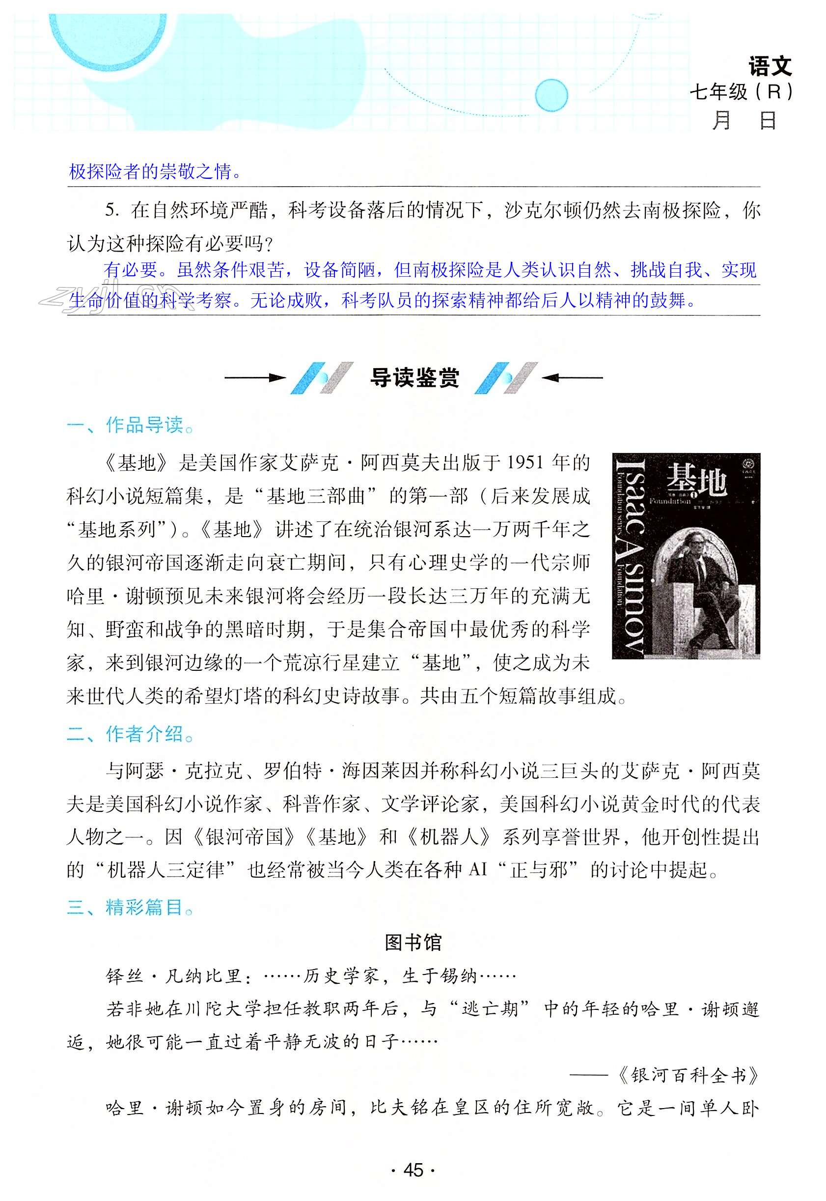 注:目前有些书本章节名称可能整理的还不是很完善,但都是按照顺序排列的,请同学们按照顺序仔细查找。练习册 2022年优佳学案暑假活动七年级语文人教版 答案主要是用来给同学们做完题方便对答案用的,请勿直接抄袭。