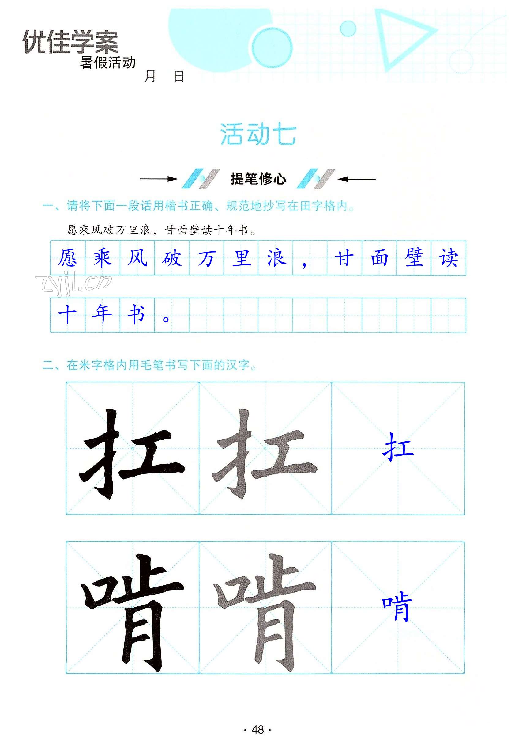 注:目前有些书本章节名称可能整理的还不是很完善,但都是按照顺序排列的,请同学们按照顺序仔细查找。练习册 2022年优佳学案暑假活动七年级语文人教版 答案主要是用来给同学们做完题方便对答案用的,请勿直接抄袭。
