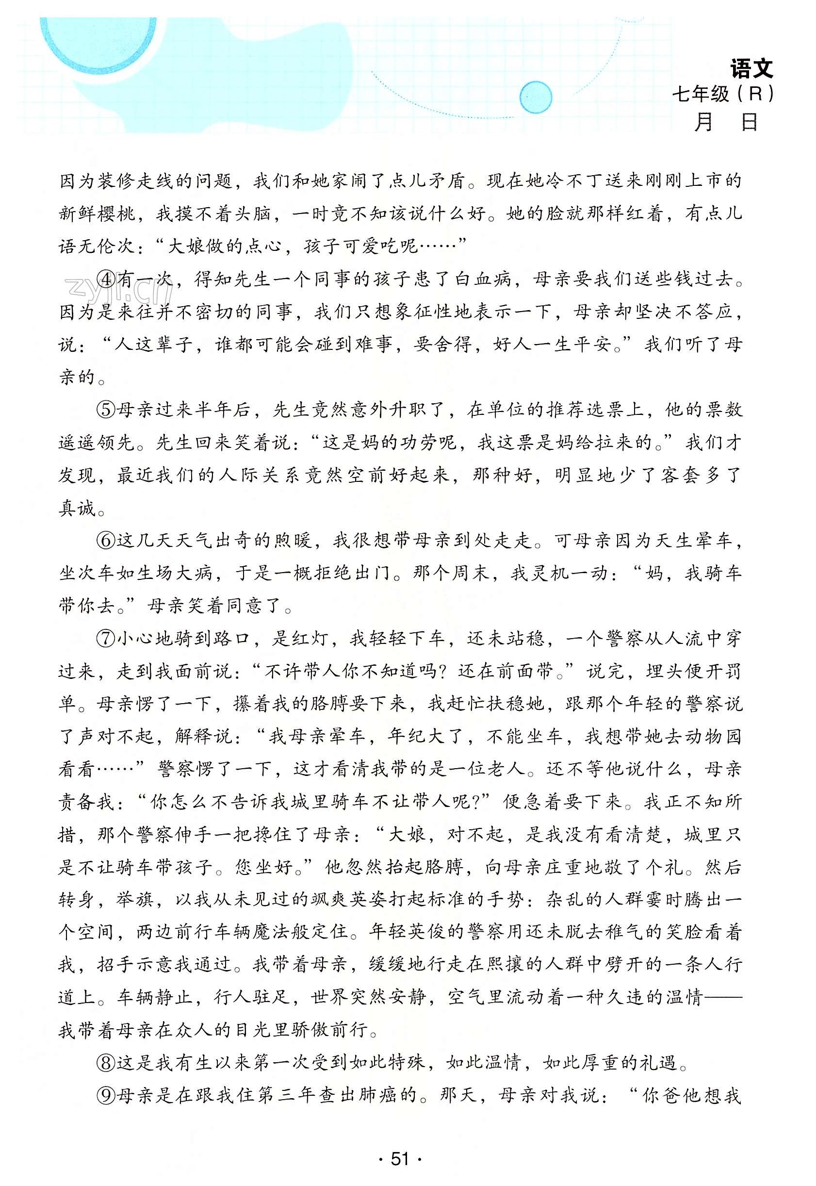 2022年优佳学案暑假活动七年级语文人教版