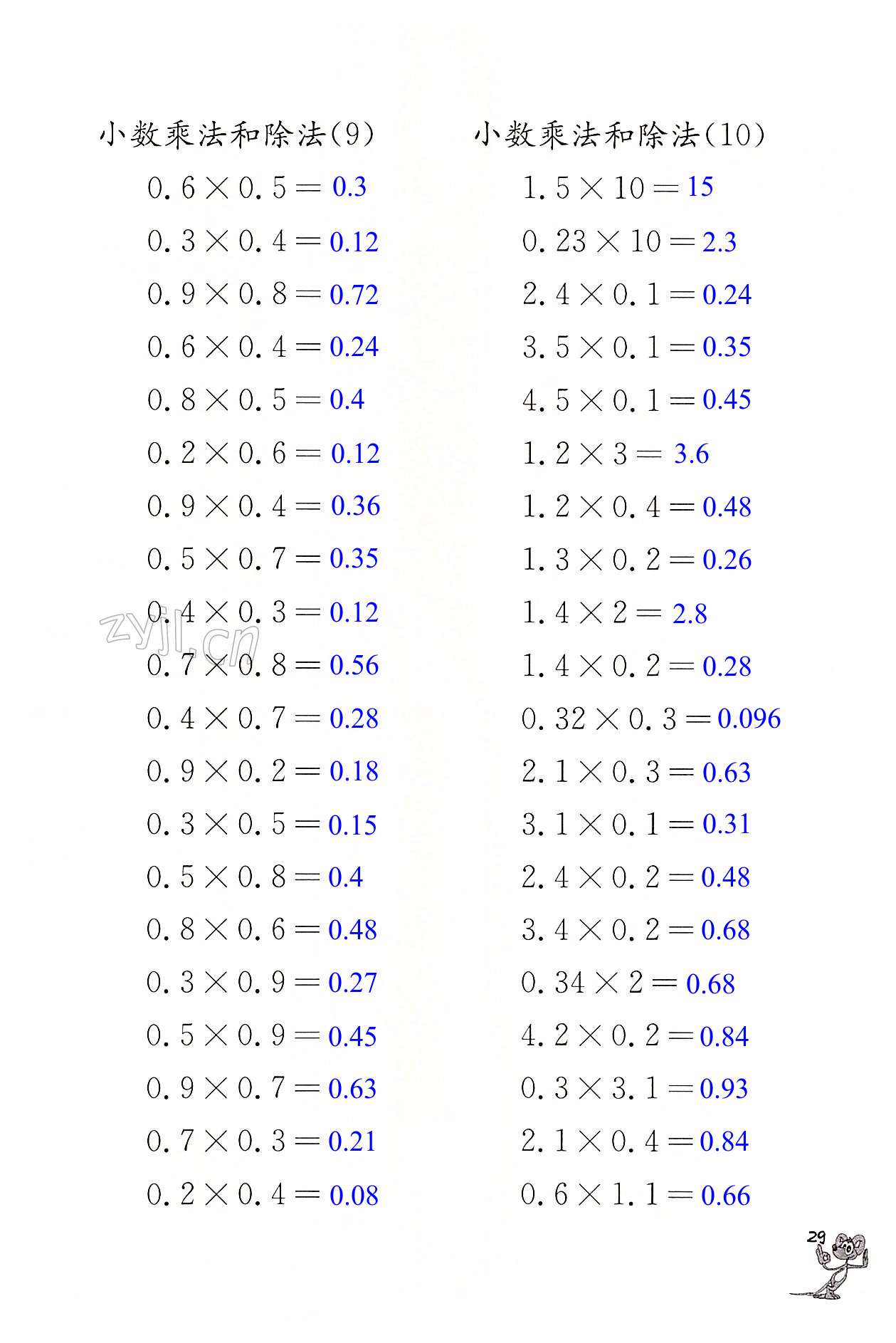 2022年口算练习册江苏凤凰教育出版社五年级数学上册苏教版
