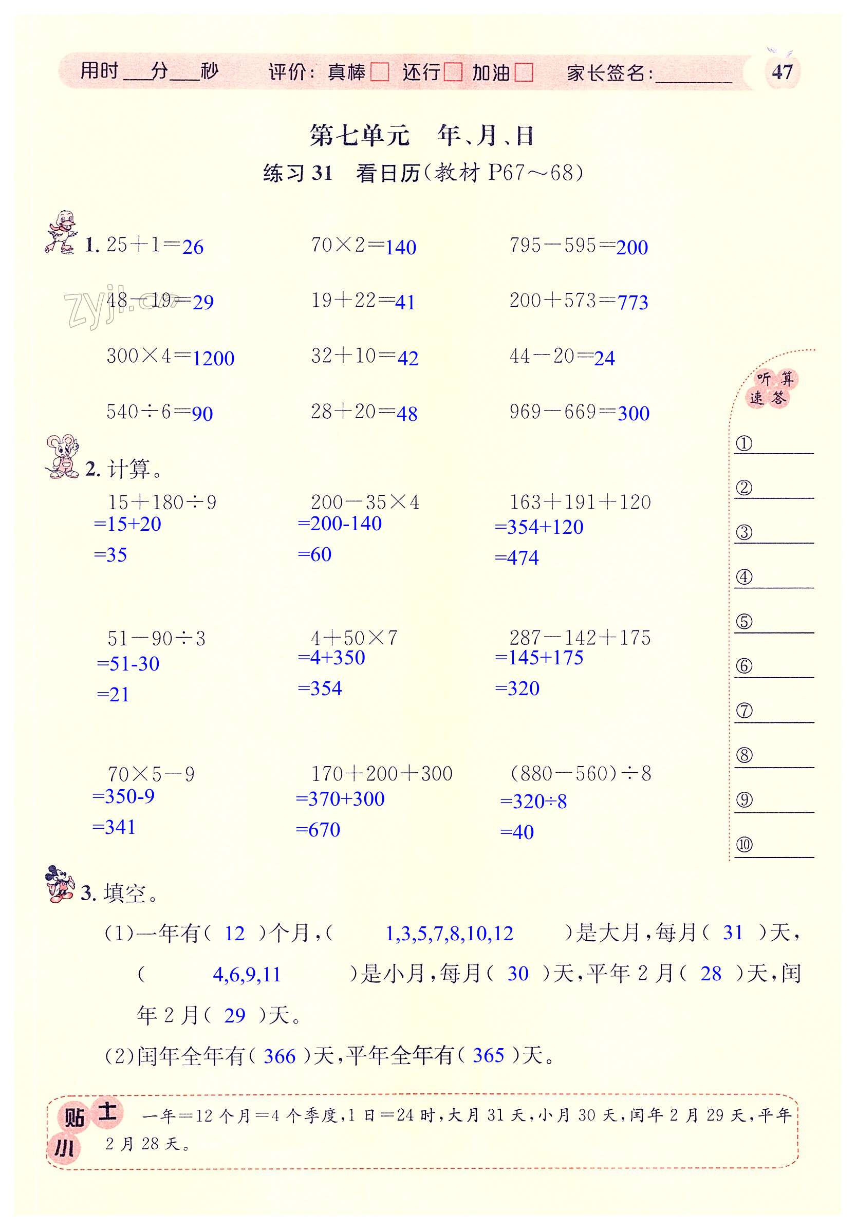 注:目前有些书本章节名称可能整理的还不是很完善,但都是按照顺序排列的,请同学们按照顺序仔细查找。练习册 2022年秒杀口算题三年级数学上册北师大版 答案主要是用来给同学们做完题方便对答案用的,请勿直接抄袭。