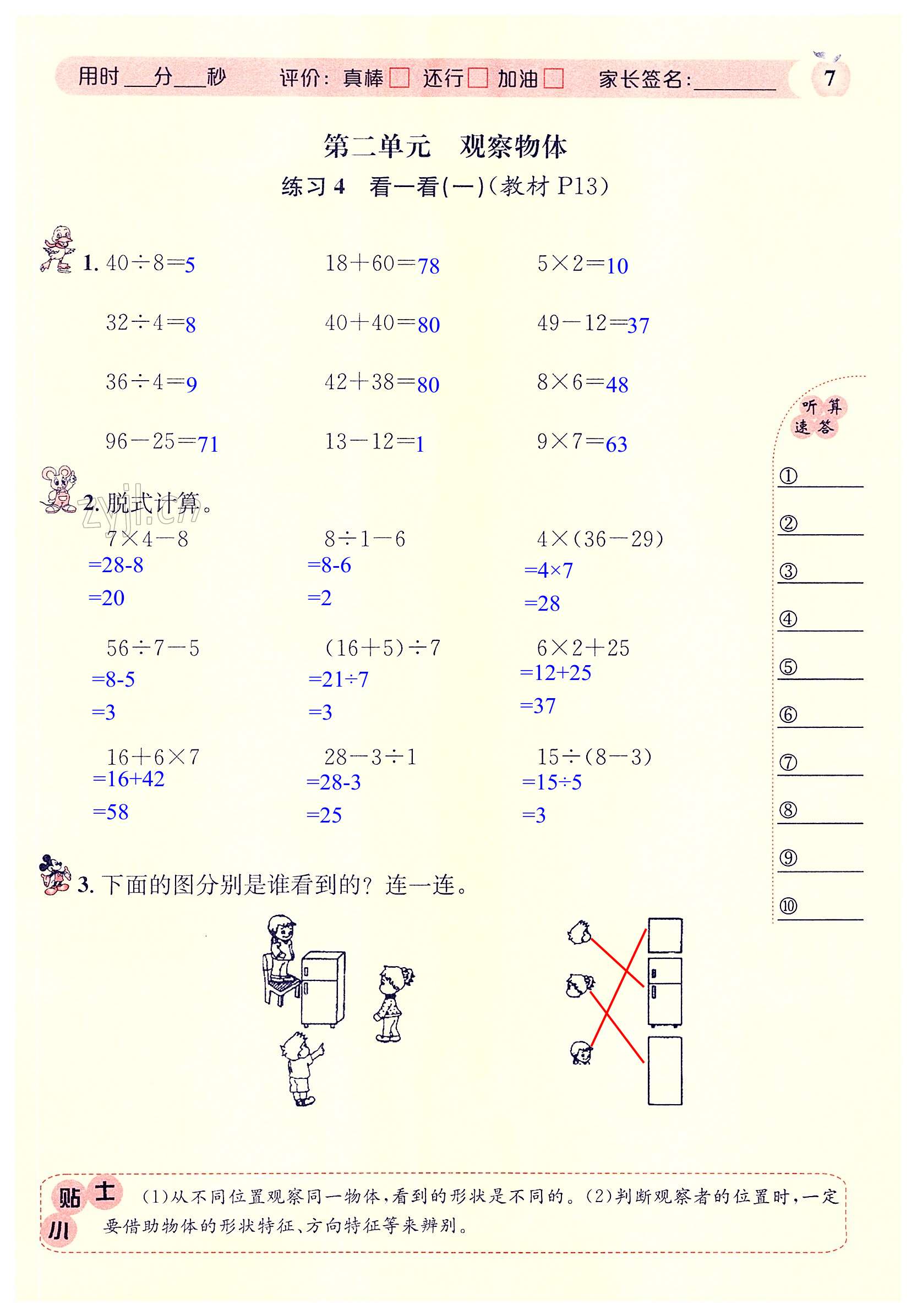 注:目前有些书本章节名称可能整理的还不是很完善,但都是按照顺序排列的,请同学们按照顺序仔细查找。练习册 2022年秒杀口算题三年级数学上册北师大版 答案主要是用来给同学们做完题方便对答案用的,请勿直接抄袭。