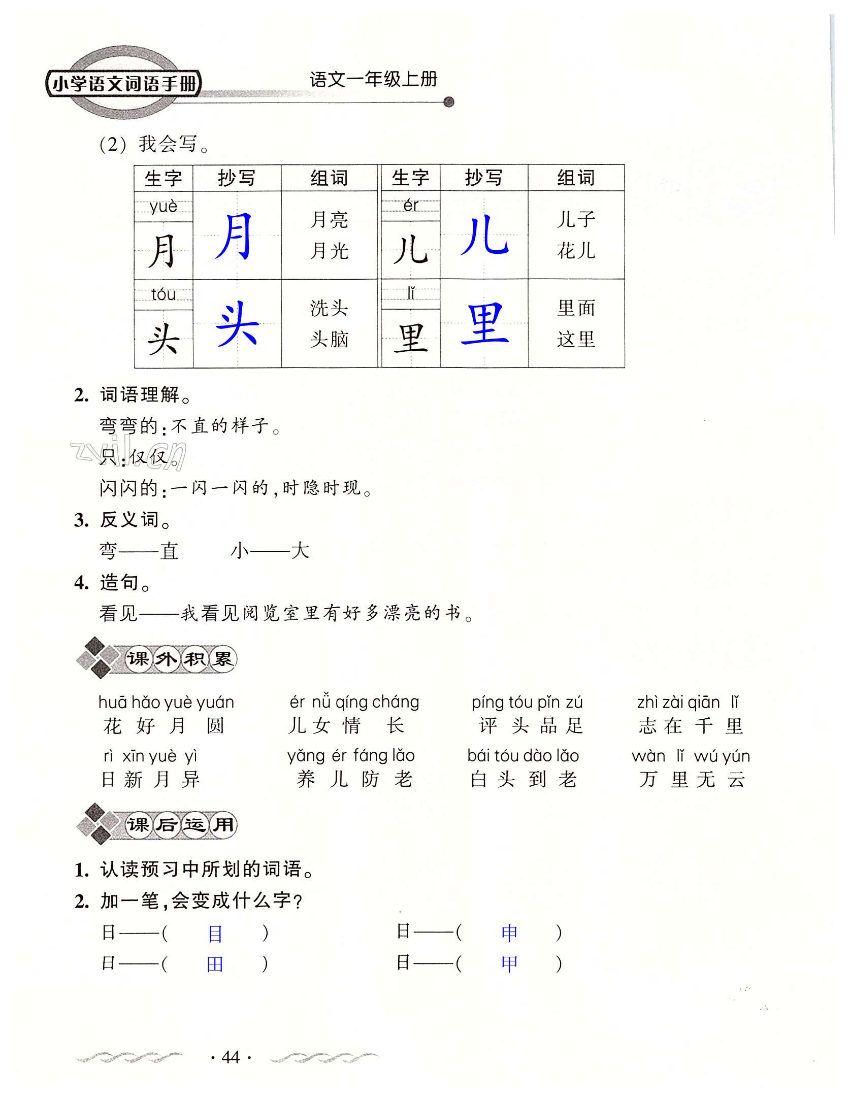 注:目前有些书本章节名称可能整理的还不是很完善,但都是按照顺序排列的,请同学们按照顺序仔细查找。练习册 2022年小学语文词语手册一年级上册人教版开明出版社 答案主要是用来给同学们做完题方便对答案用的,请勿直接抄袭。