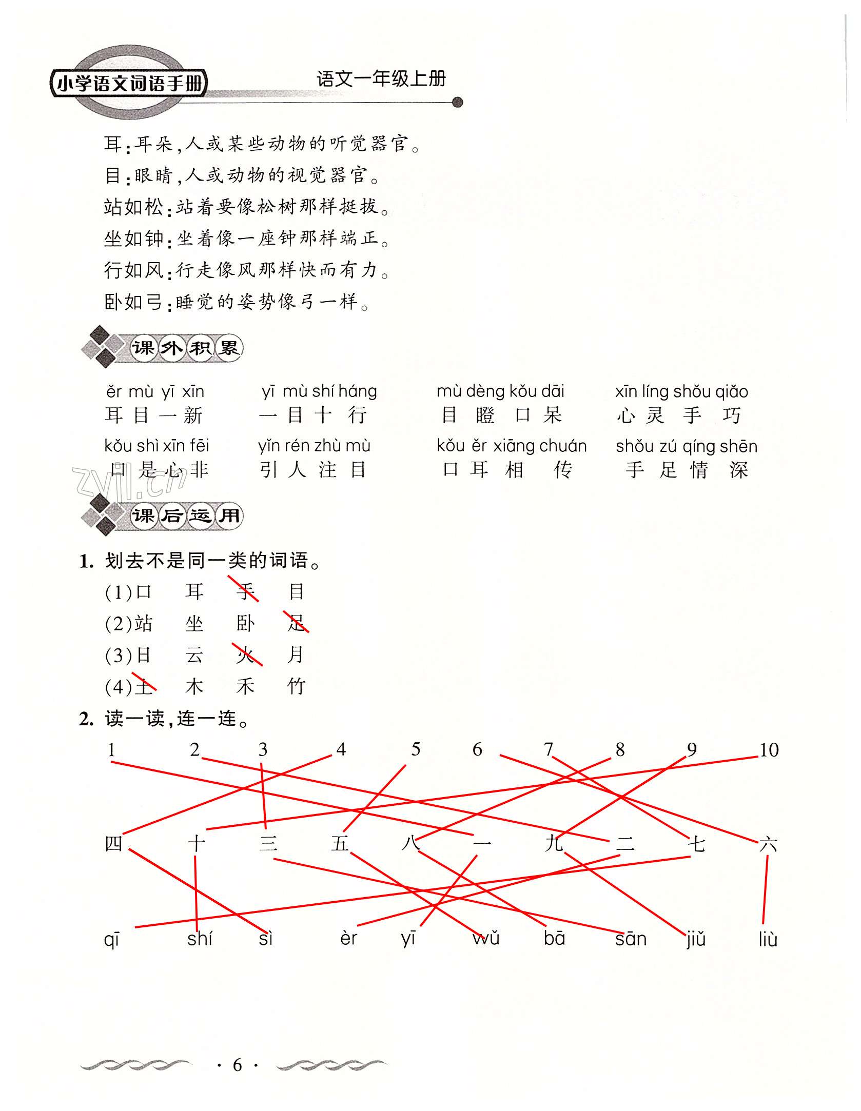 注:目前有些书本章节名称可能整理的还不是很完善,但都是按照顺序排列的,请同学们按照顺序仔细查找。练习册 2022年小学语文词语手册一年级上册人教版开明出版社 答案主要是用来给同学们做完题方便对答案用的,请勿直接抄袭。