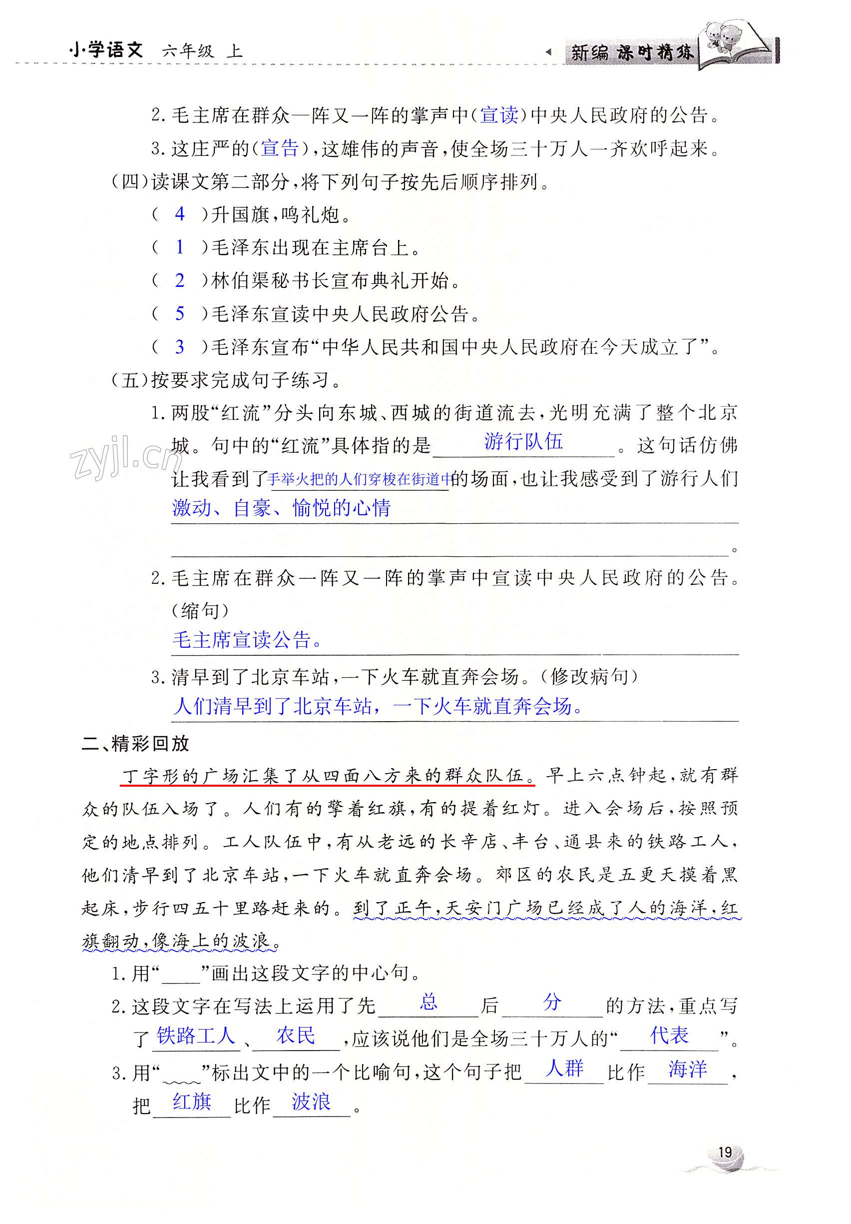 注:目前有些书本章节名称可能整理的还不是很完善,但都是按照顺序排列的,请同学们按照顺序仔细查找。练习册 2022年新编课时精练六年级语文上册人教版 答案主要是用来给同学们做完题方便对答案用的,请勿直接抄袭。