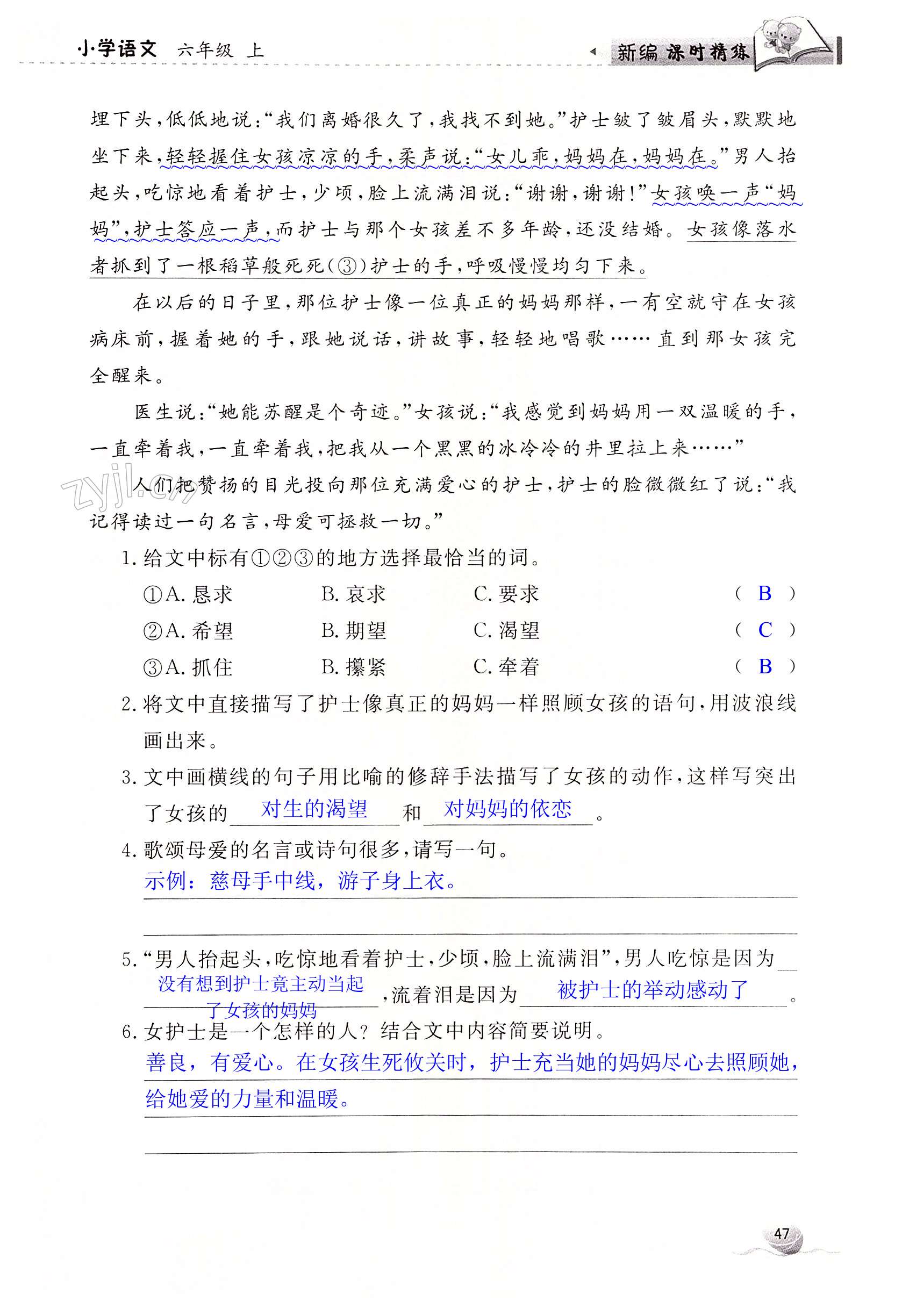 注:目前有些书本章节名称可能整理的还不是很完善,但都是按照顺序排列的,请同学们按照顺序仔细查找。练习册 2022年新编课时精练六年级语文上册人教版 答案主要是用来给同学们做完题方便对答案用的,请勿直接抄袭。