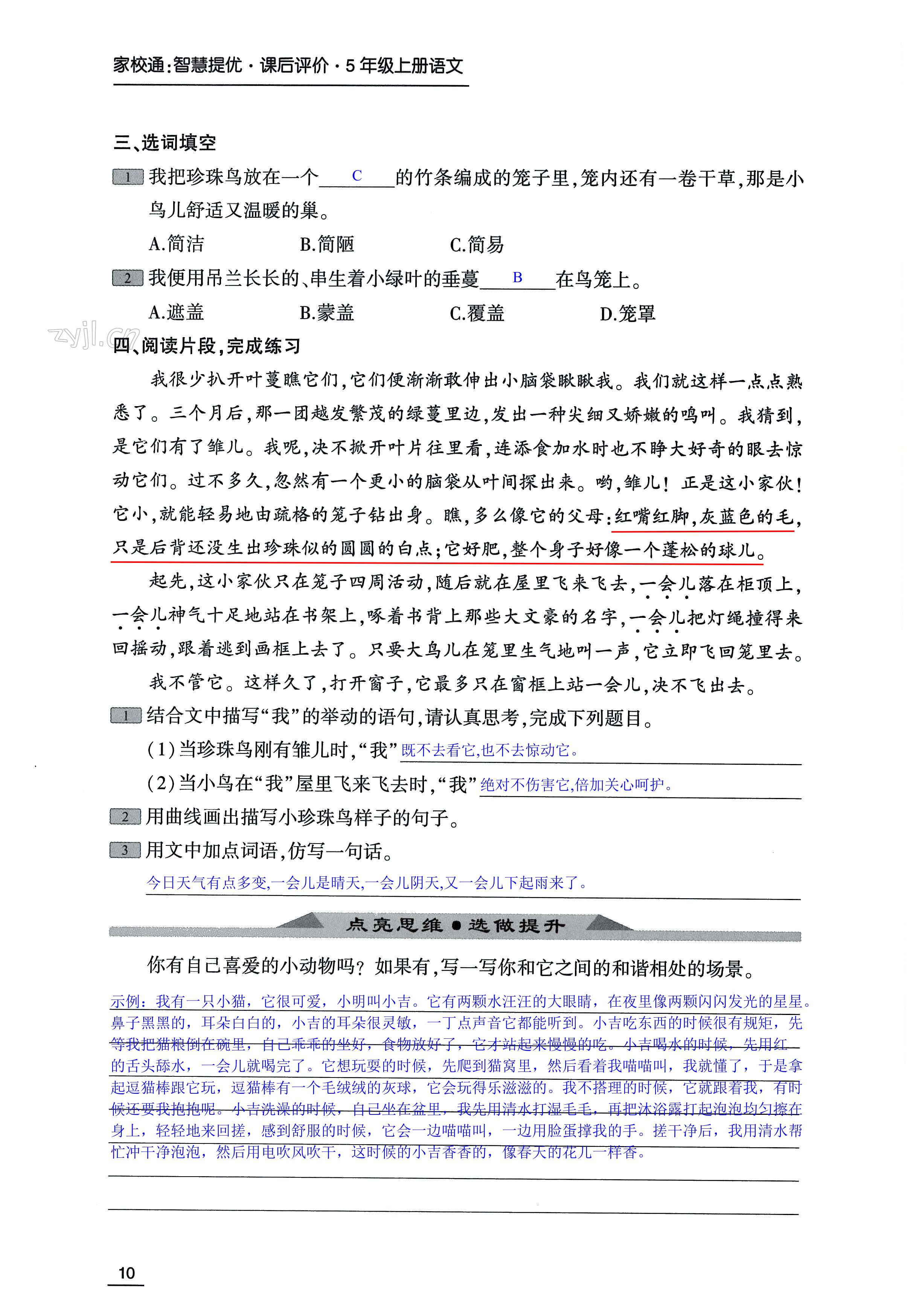 注:目前有些书本章节名称可能整理的还不是很完善,但都是按照顺序排列的,请同学们按照顺序仔细查找。练习册 2022年家校通智慧提优课后评价五年级语文上册人教版 答案主要是用来给同学们做完题方便对答案用的,请勿直接抄袭。
