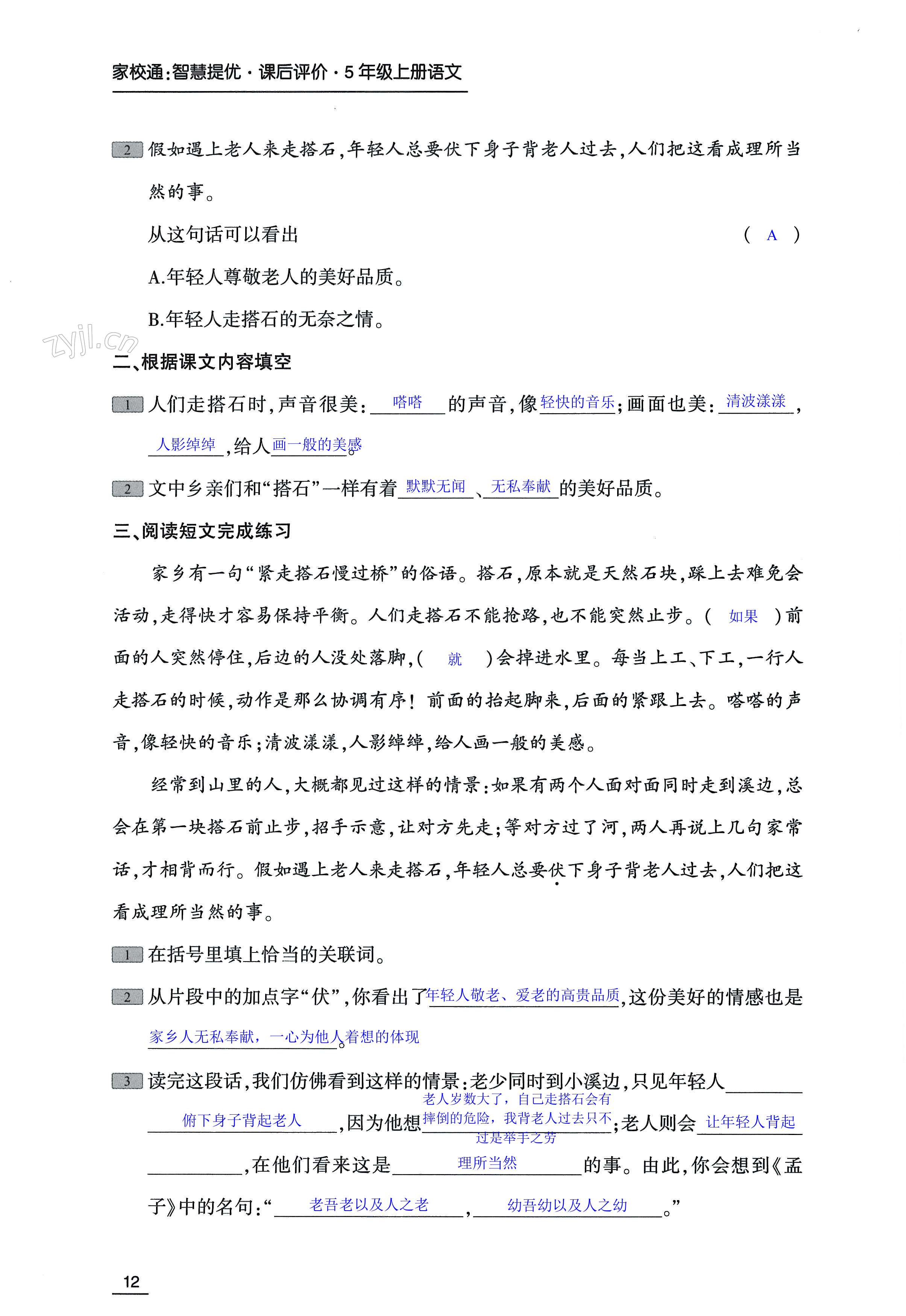 注:目前有些书本章节名称可能整理的还不是很完善,但都是按照顺序排列的,请同学们按照顺序仔细查找。练习册 2022年家校通智慧提优课后评价五年级语文上册人教版 答案主要是用来给同学们做完题方便对答案用的,请勿直接抄袭。