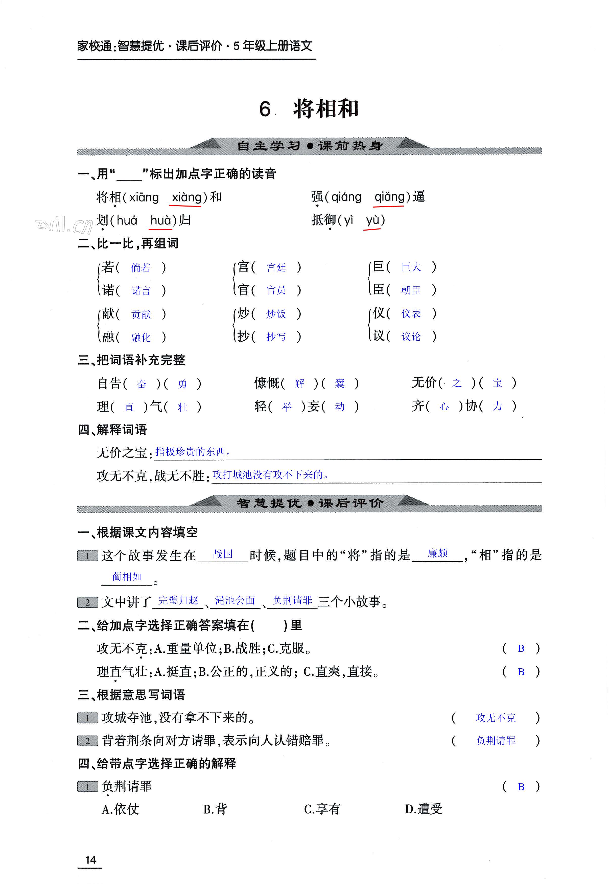 注:目前有些书本章节名称可能整理的还不是很完善,但都是按照顺序排列的,请同学们按照顺序仔细查找。练习册 2022年家校通智慧提优课后评价五年级语文上册人教版 答案主要是用来给同学们做完题方便对答案用的,请勿直接抄袭。