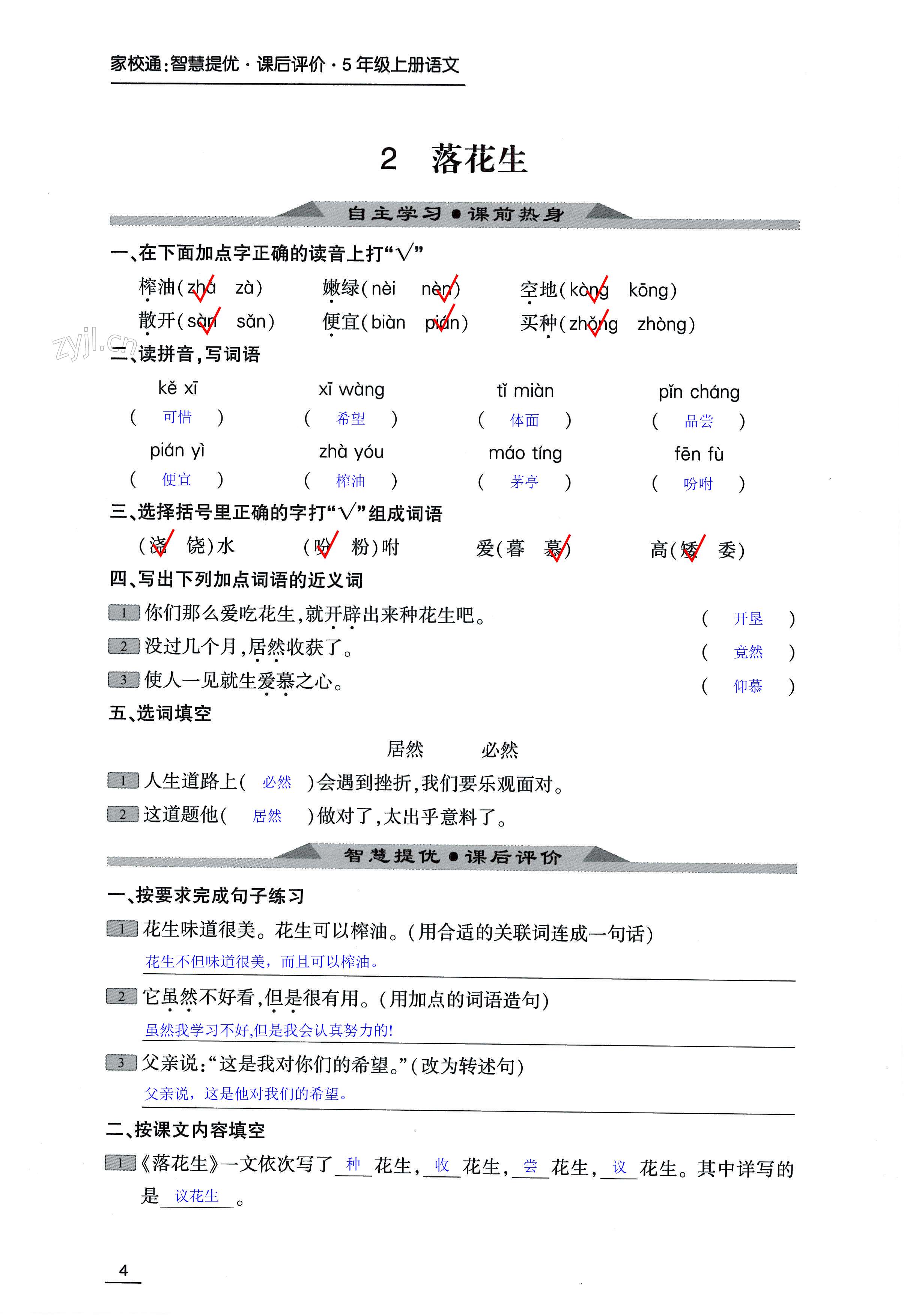 注:目前有些书本章节名称可能整理的还不是很完善,但都是按照顺序排列的,请同学们按照顺序仔细查找。练习册 2022年家校通智慧提优课后评价五年级语文上册人教版 答案主要是用来给同学们做完题方便对答案用的,请勿直接抄袭。