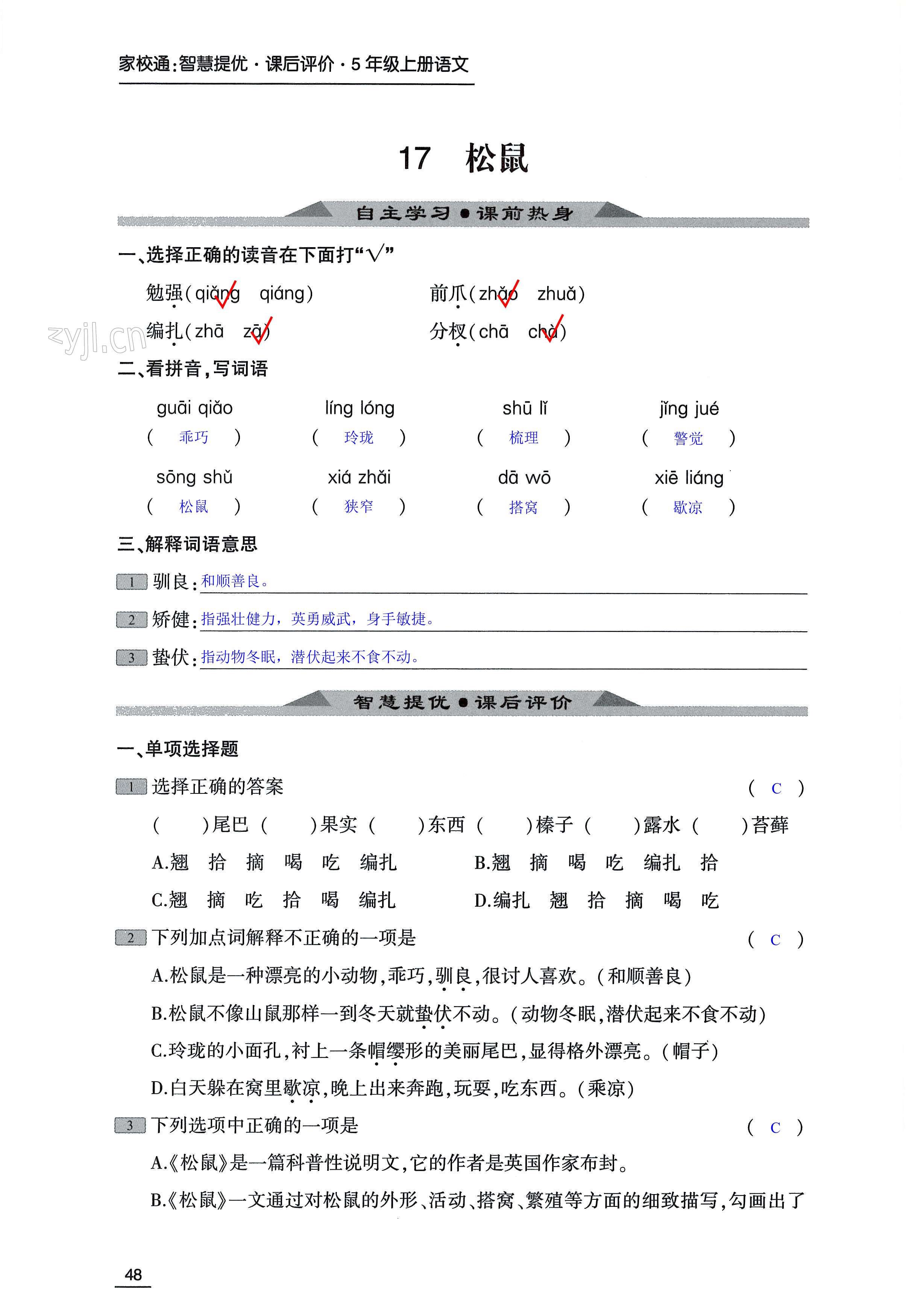 注:目前有些书本章节名称可能整理的还不是很完善,但都是按照顺序排列的,请同学们按照顺序仔细查找。练习册 2022年家校通智慧提优课后评价五年级语文上册人教版 答案主要是用来给同学们做完题方便对答案用的,请勿直接抄袭。