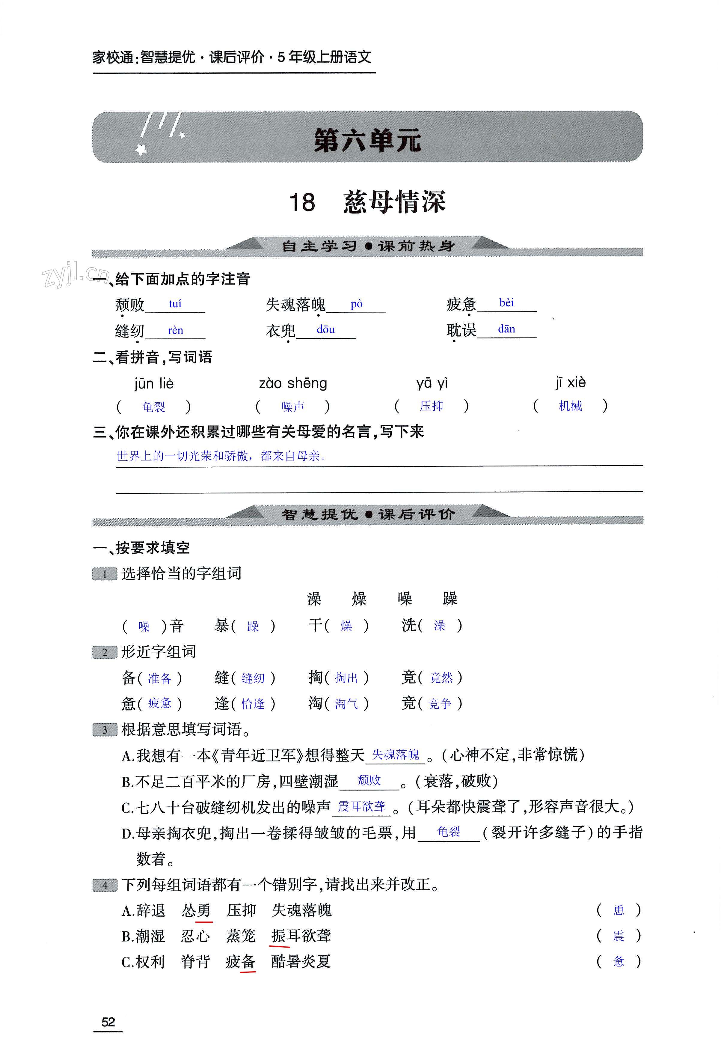 注:目前有些书本章节名称可能整理的还不是很完善,但都是按照顺序排列的,请同学们按照顺序仔细查找。练习册 2022年家校通智慧提优课后评价五年级语文上册人教版 答案主要是用来给同学们做完题方便对答案用的,请勿直接抄袭。