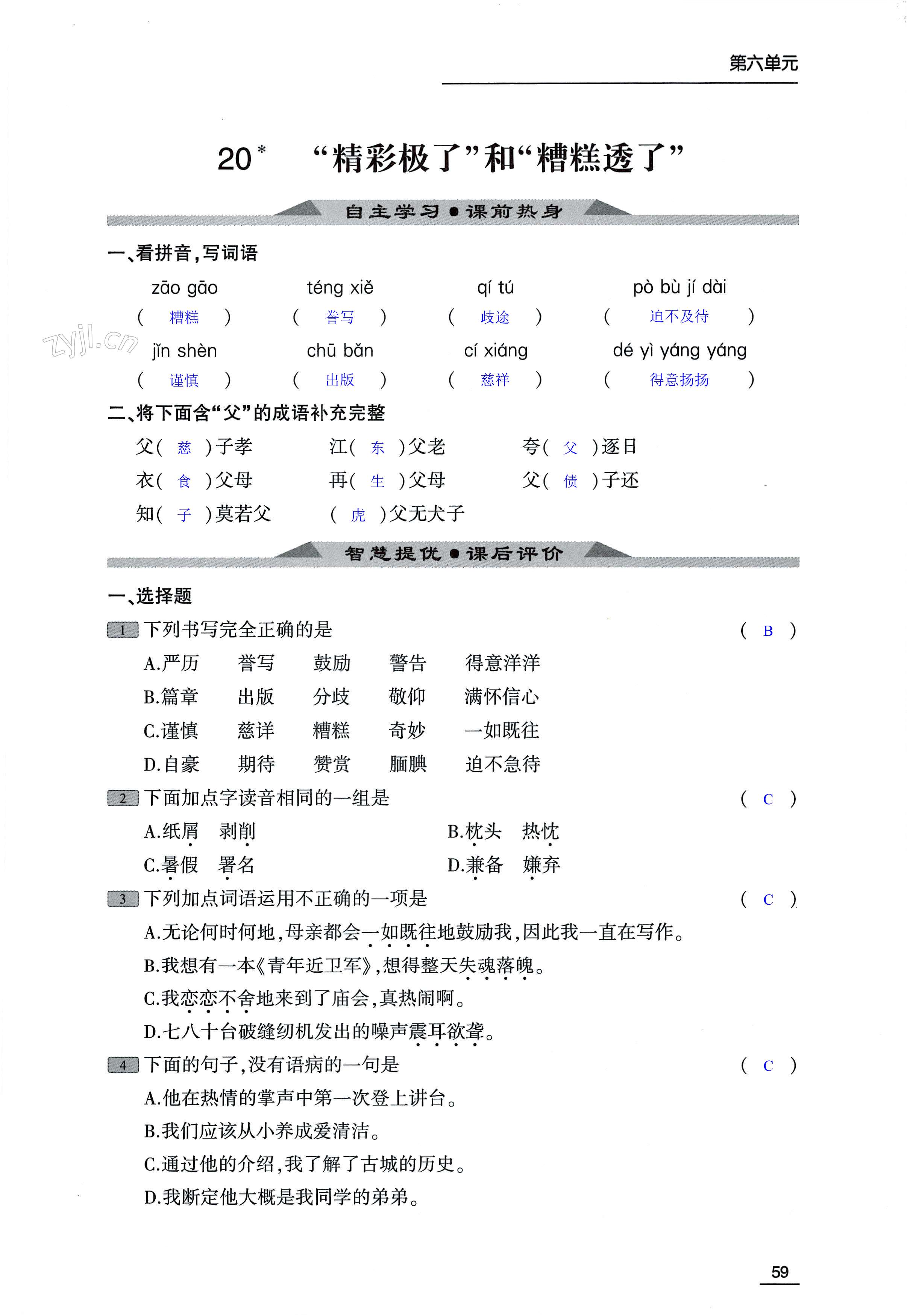 注:目前有些书本章节名称可能整理的还不是很完善,但都是按照顺序排列的,请同学们按照顺序仔细查找。练习册 2022年家校通智慧提优课后评价五年级语文上册人教版 答案主要是用来给同学们做完题方便对答案用的,请勿直接抄袭。