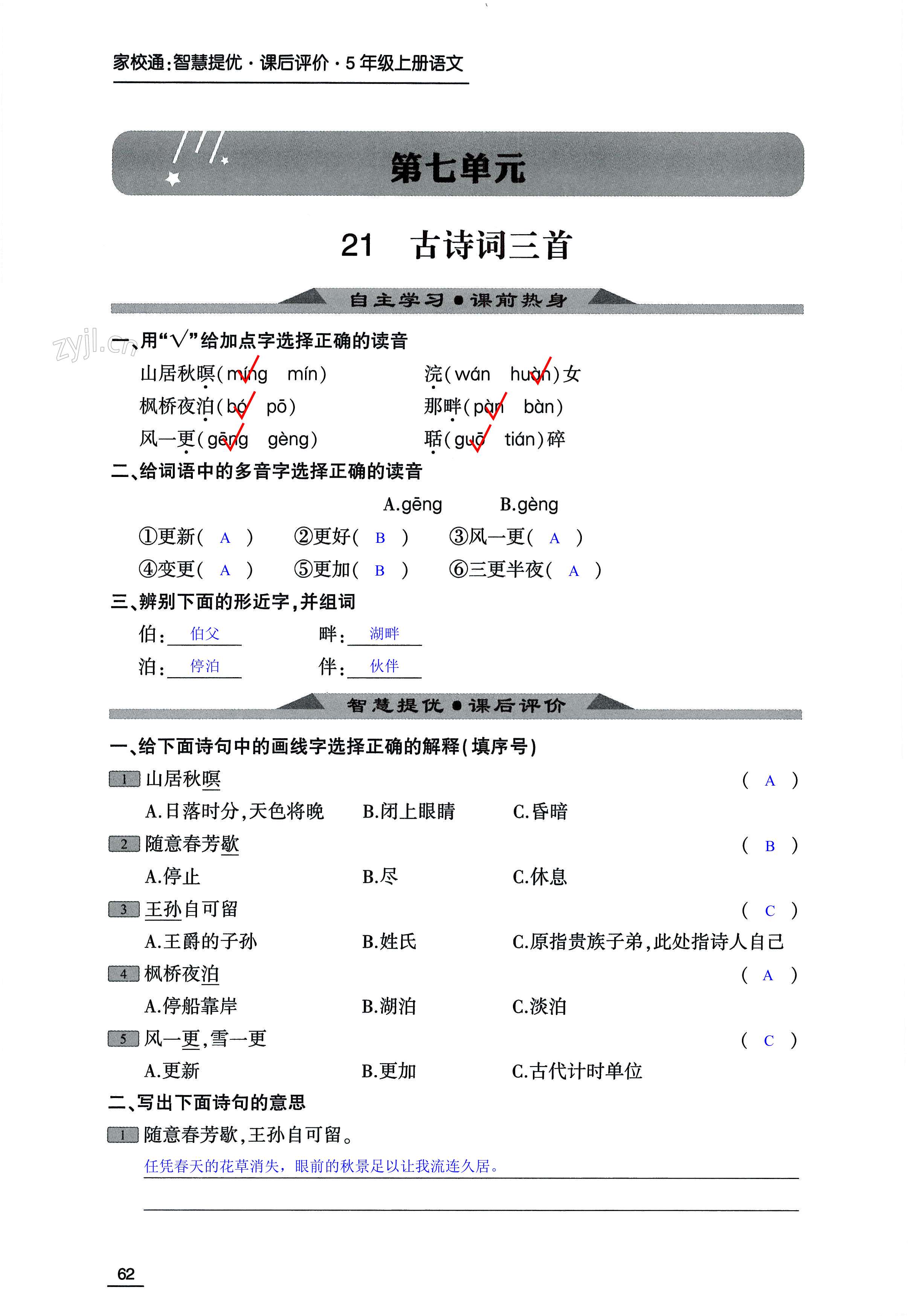 注:目前有些书本章节名称可能整理的还不是很完善,但都是按照顺序排列的,请同学们按照顺序仔细查找。练习册 2022年家校通智慧提优课后评价五年级语文上册人教版 答案主要是用来给同学们做完题方便对答案用的,请勿直接抄袭。