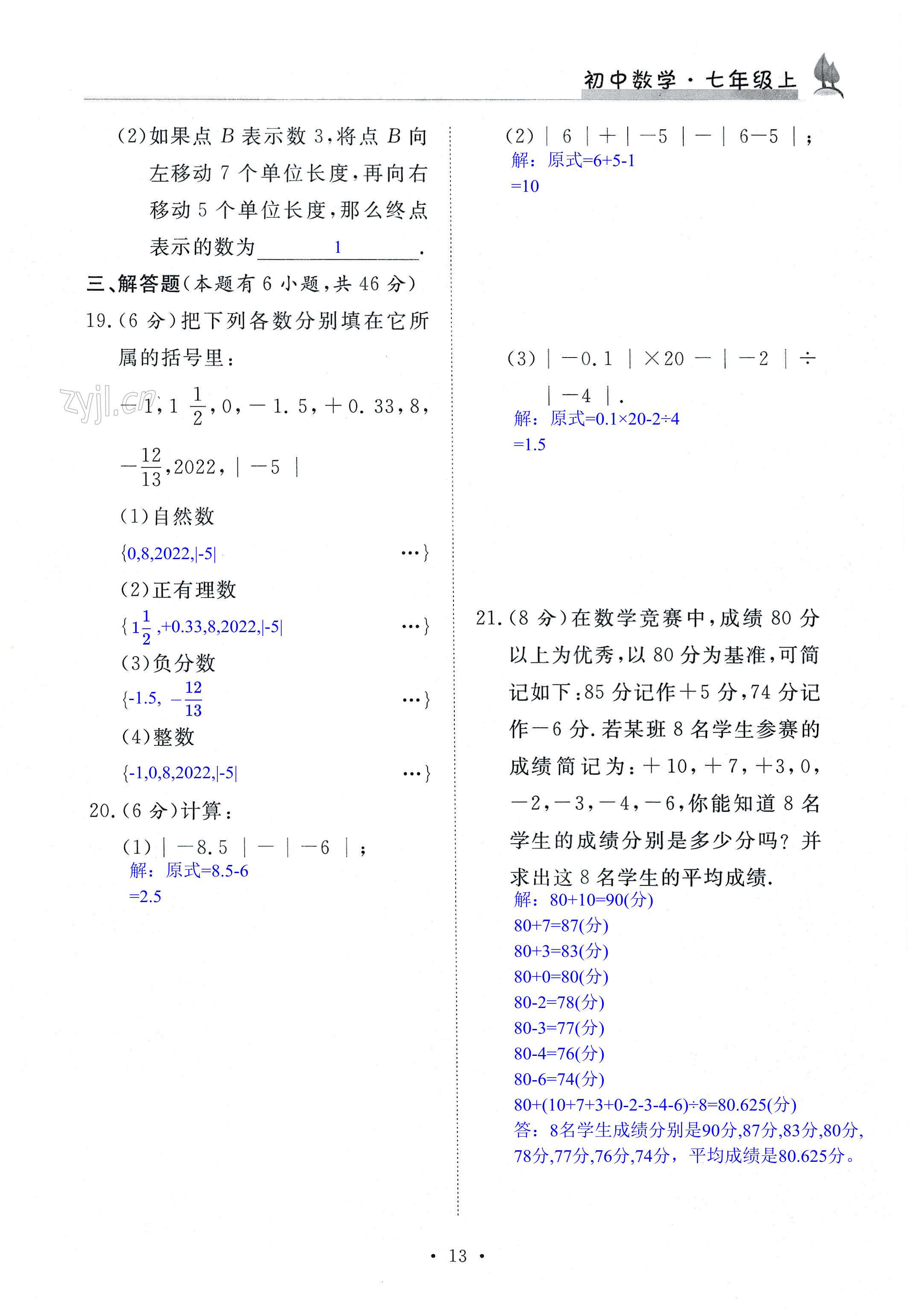 注:目前有些书本章节名称可能整理的还不是很完善,但都是按照顺序排列的,请同学们按照顺序仔细查找。练习册 2022年课时精练七年级数学上册浙教版 答案主要是用来给同学们做完题方便对答案用的,请勿直接抄袭。