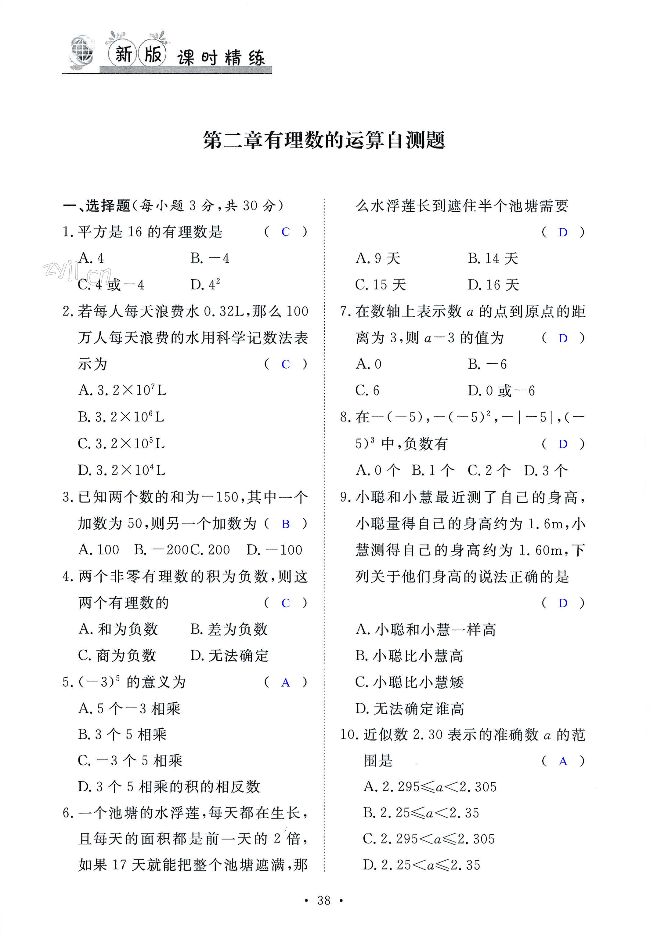 注:目前有些书本章节名称可能整理的还不是很完善,但都是按照顺序排列的,请同学们按照顺序仔细查找。练习册 2022年课时精练七年级数学上册浙教版 答案主要是用来给同学们做完题方便对答案用的,请勿直接抄袭。