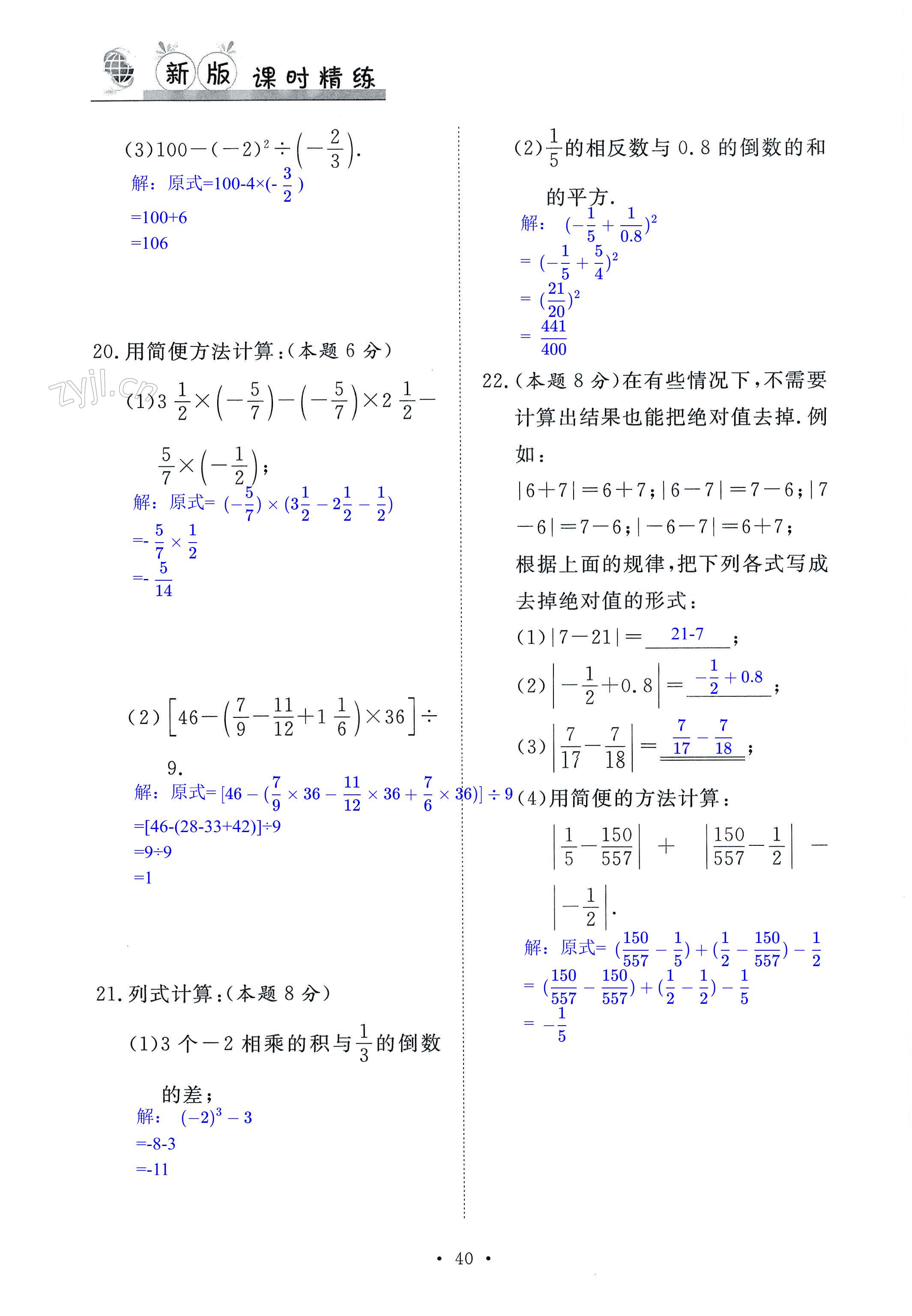 注:目前有些书本章节名称可能整理的还不是很完善,但都是按照顺序排列的,请同学们按照顺序仔细查找。练习册 2022年课时精练七年级数学上册浙教版 答案主要是用来给同学们做完题方便对答案用的,请勿直接抄袭。