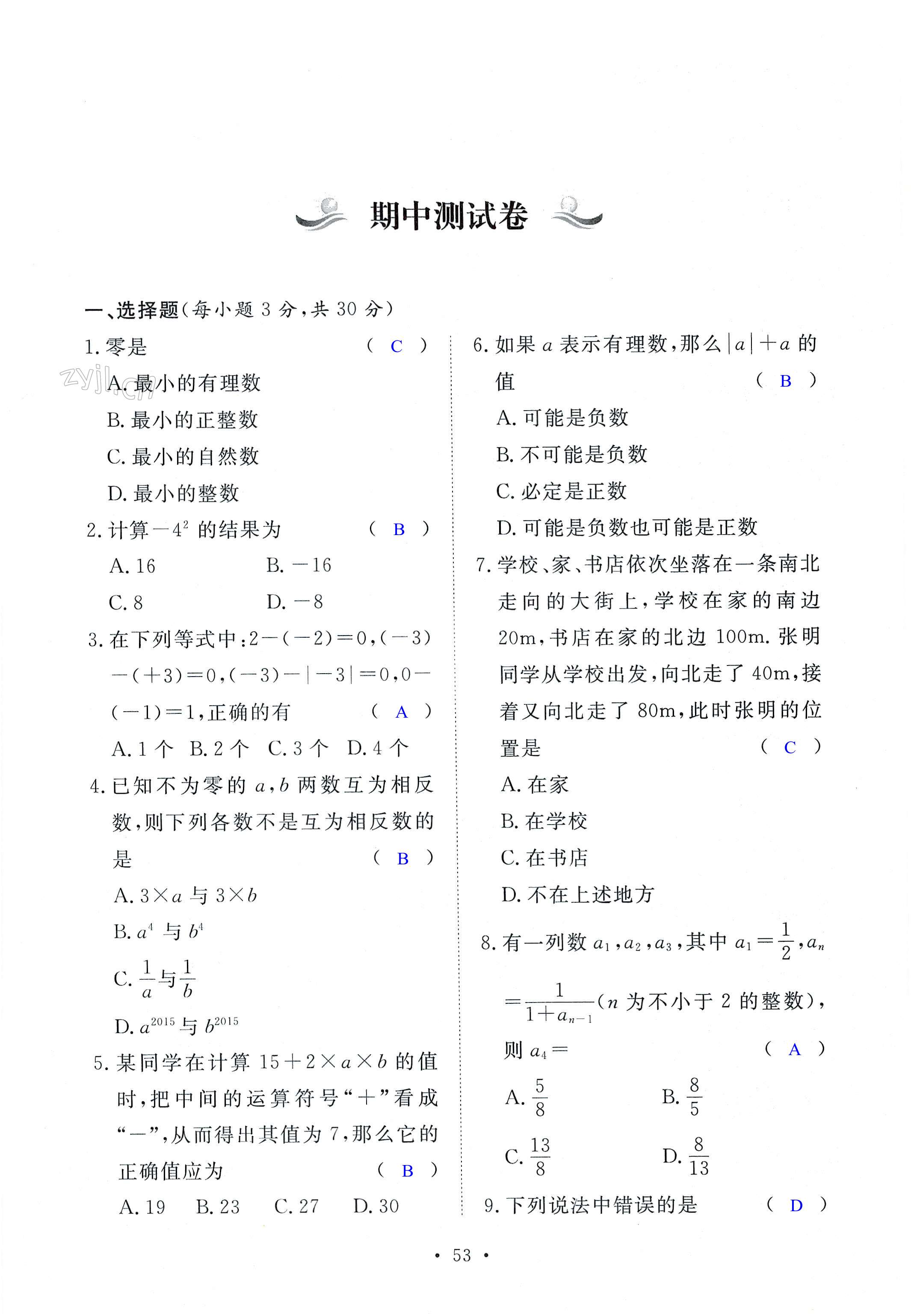 注:目前有些书本章节名称可能整理的还不是很完善,但都是按照顺序排列的,请同学们按照顺序仔细查找。练习册 2022年课时精练七年级数学上册浙教版 答案主要是用来给同学们做完题方便对答案用的,请勿直接抄袭。