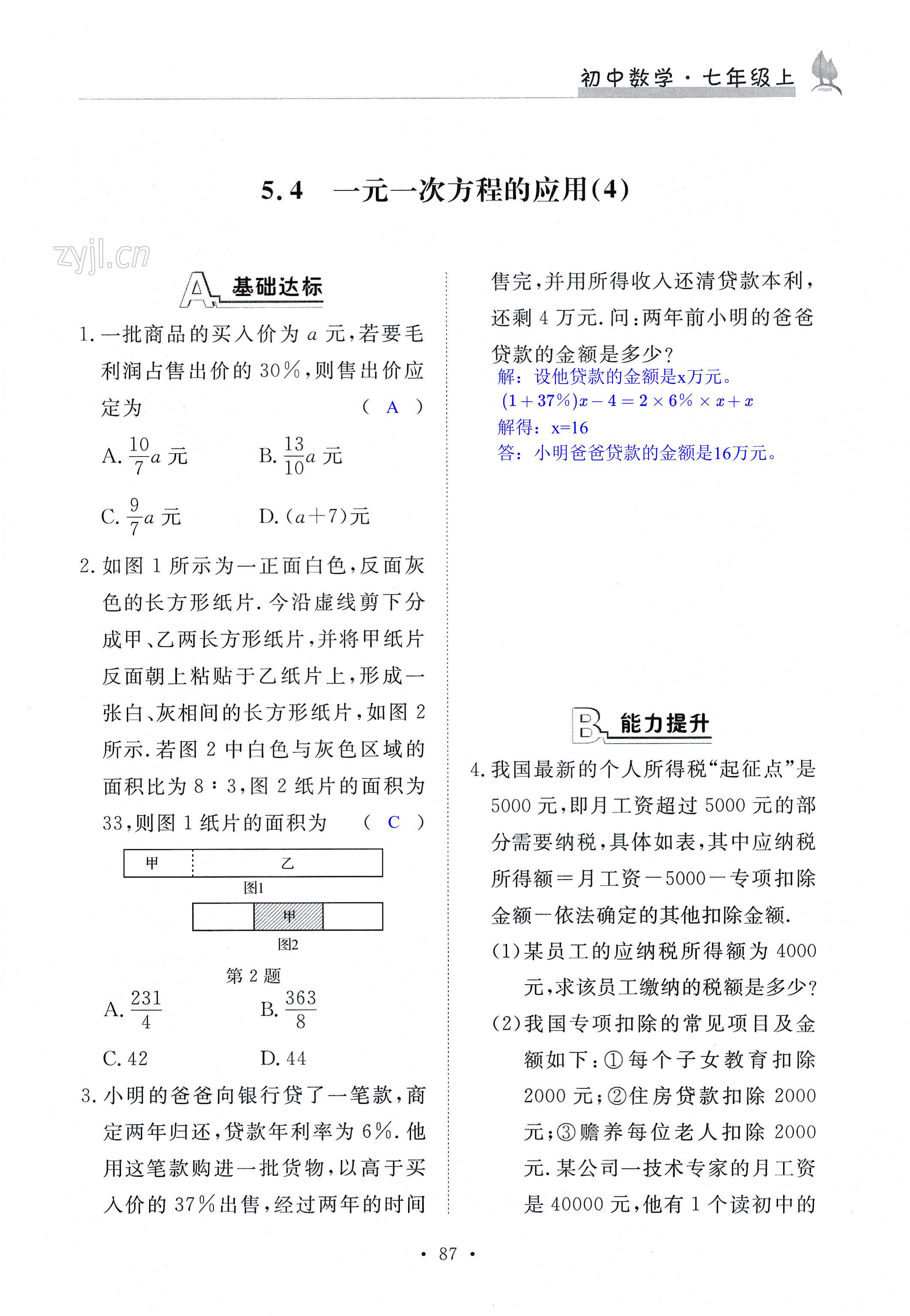 注:目前有些书本章节名称可能整理的还不是很完善,但都是按照顺序排列的,请同学们按照顺序仔细查找。练习册 2022年课时精练七年级数学上册浙教版 答案主要是用来给同学们做完题方便对答案用的,请勿直接抄袭。