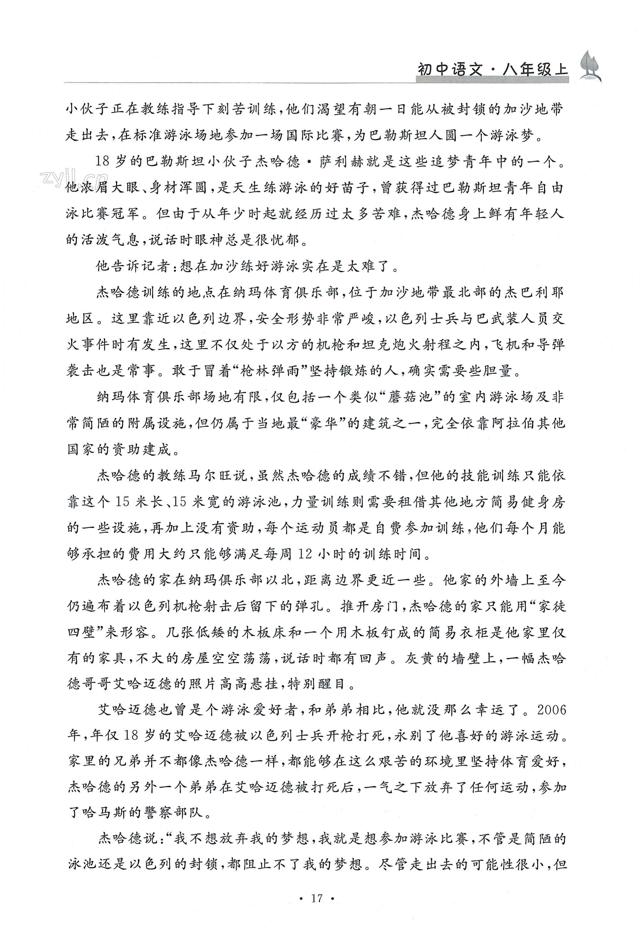 注:目前有些书本章节名称可能整理的还不是很完善,但都是按照顺序排列的,请同学们按照顺序仔细查找。练习册 2022年课时精练八年级语文上册人教版 答案主要是用来给同学们做完题方便对答案用的,请勿直接抄袭。