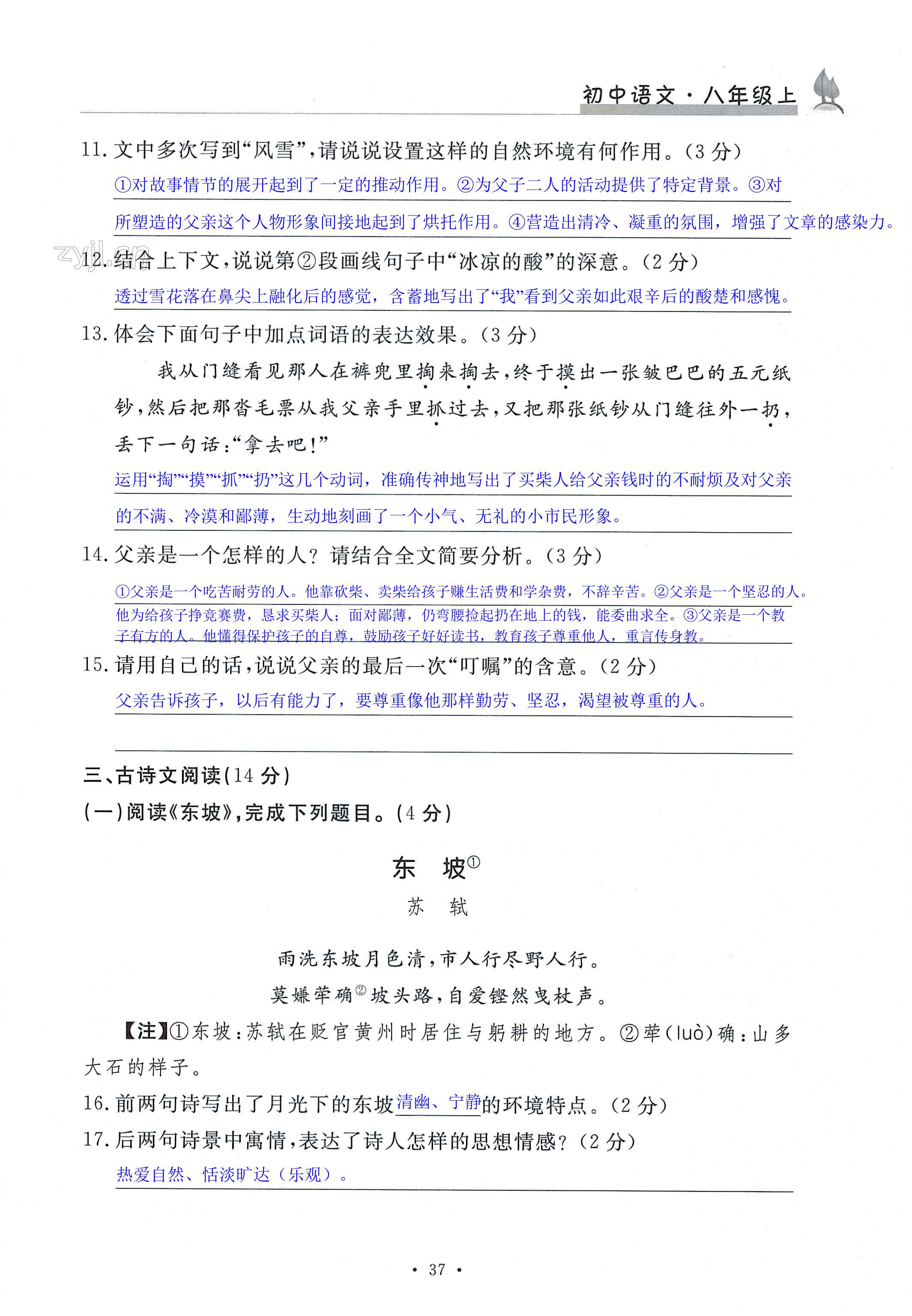 注:目前有些书本章节名称可能整理的还不是很完善,但都是按照顺序排列的,请同学们按照顺序仔细查找。练习册 2022年课时精练八年级语文上册人教版 答案主要是用来给同学们做完题方便对答案用的,请勿直接抄袭。