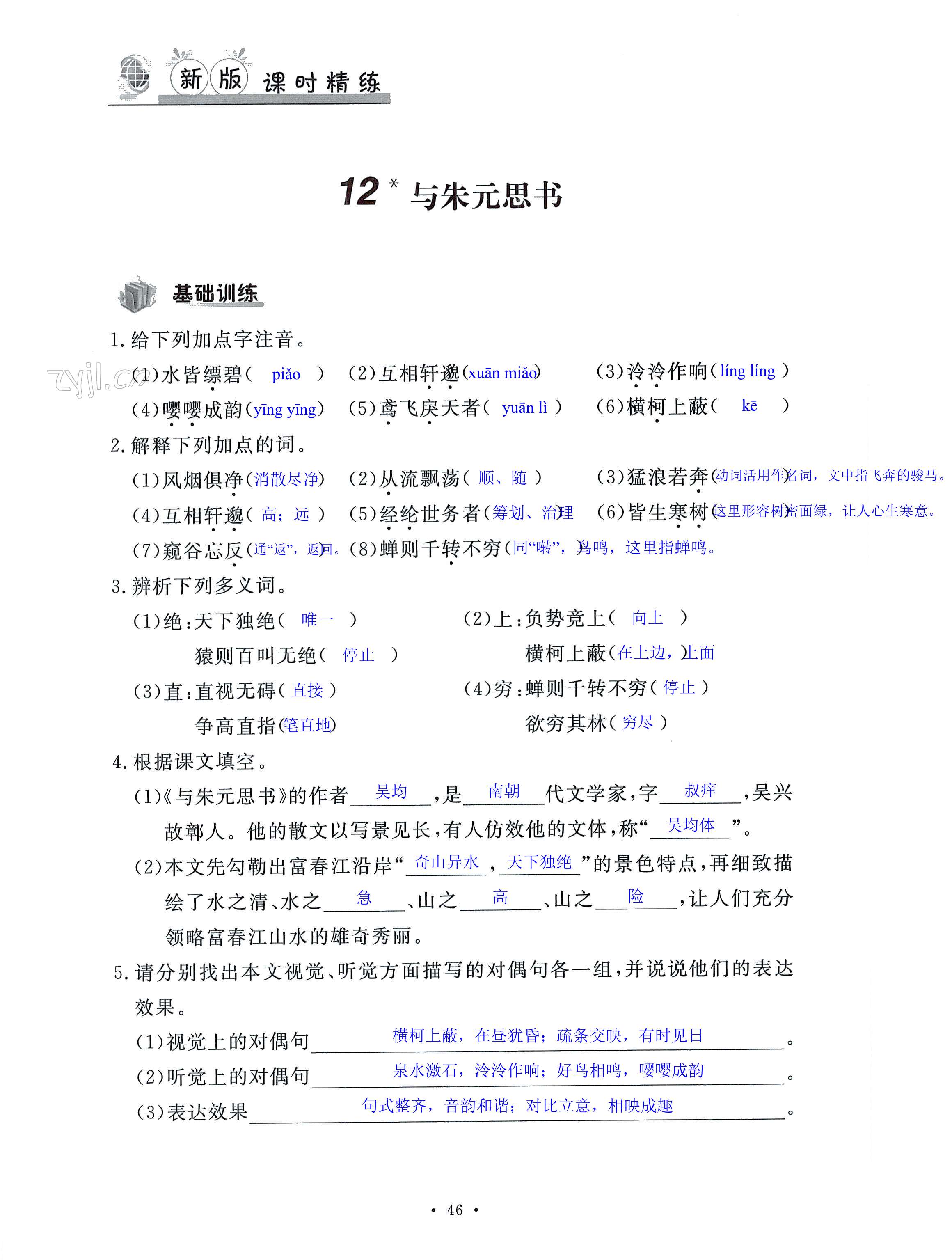 注:目前有些书本章节名称可能整理的还不是很完善,但都是按照顺序排列的,请同学们按照顺序仔细查找。练习册 2022年课时精练八年级语文上册人教版 答案主要是用来给同学们做完题方便对答案用的,请勿直接抄袭。