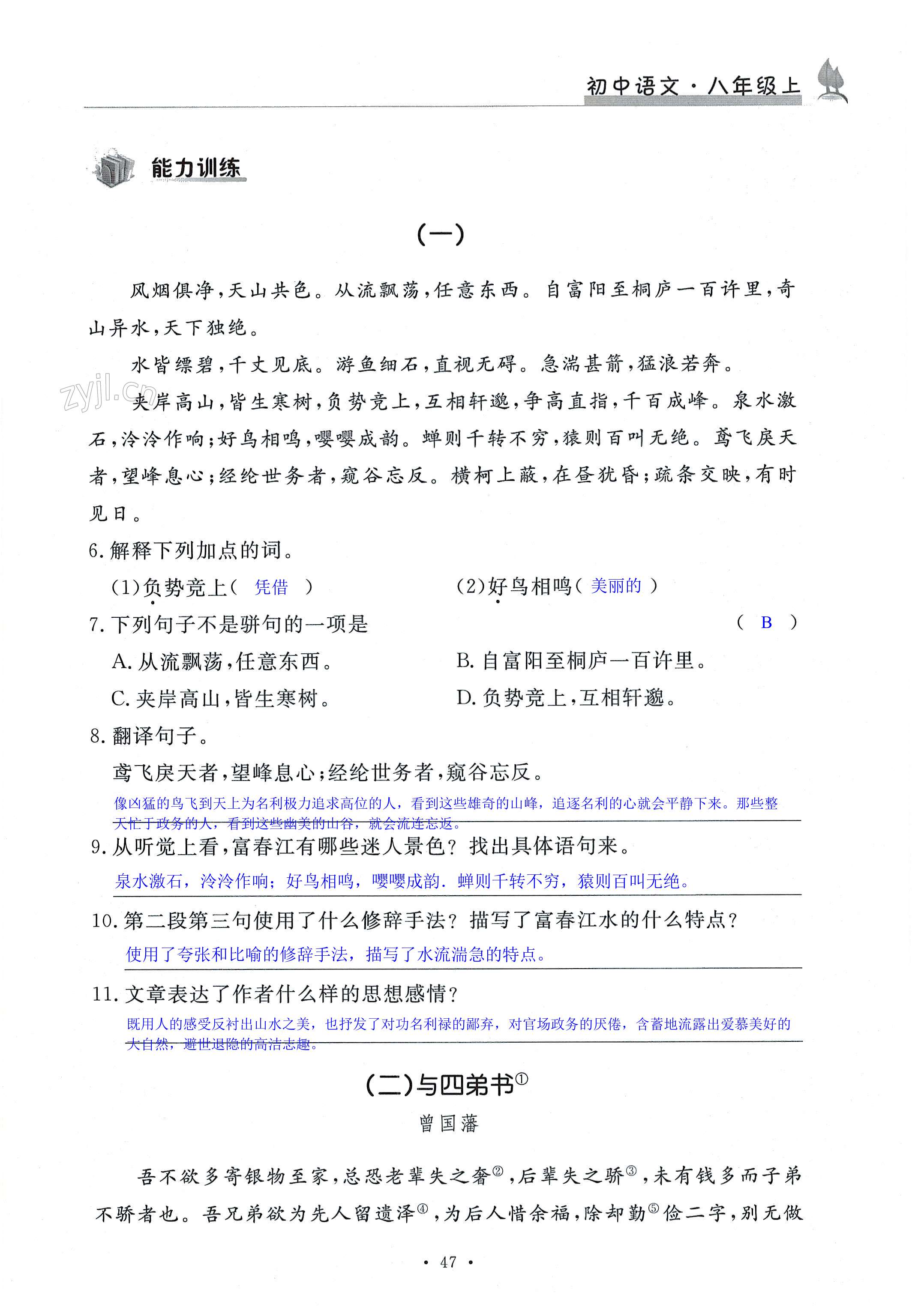 注:目前有些书本章节名称可能整理的还不是很完善,但都是按照顺序排列的,请同学们按照顺序仔细查找。练习册 2022年课时精练八年级语文上册人教版 答案主要是用来给同学们做完题方便对答案用的,请勿直接抄袭。