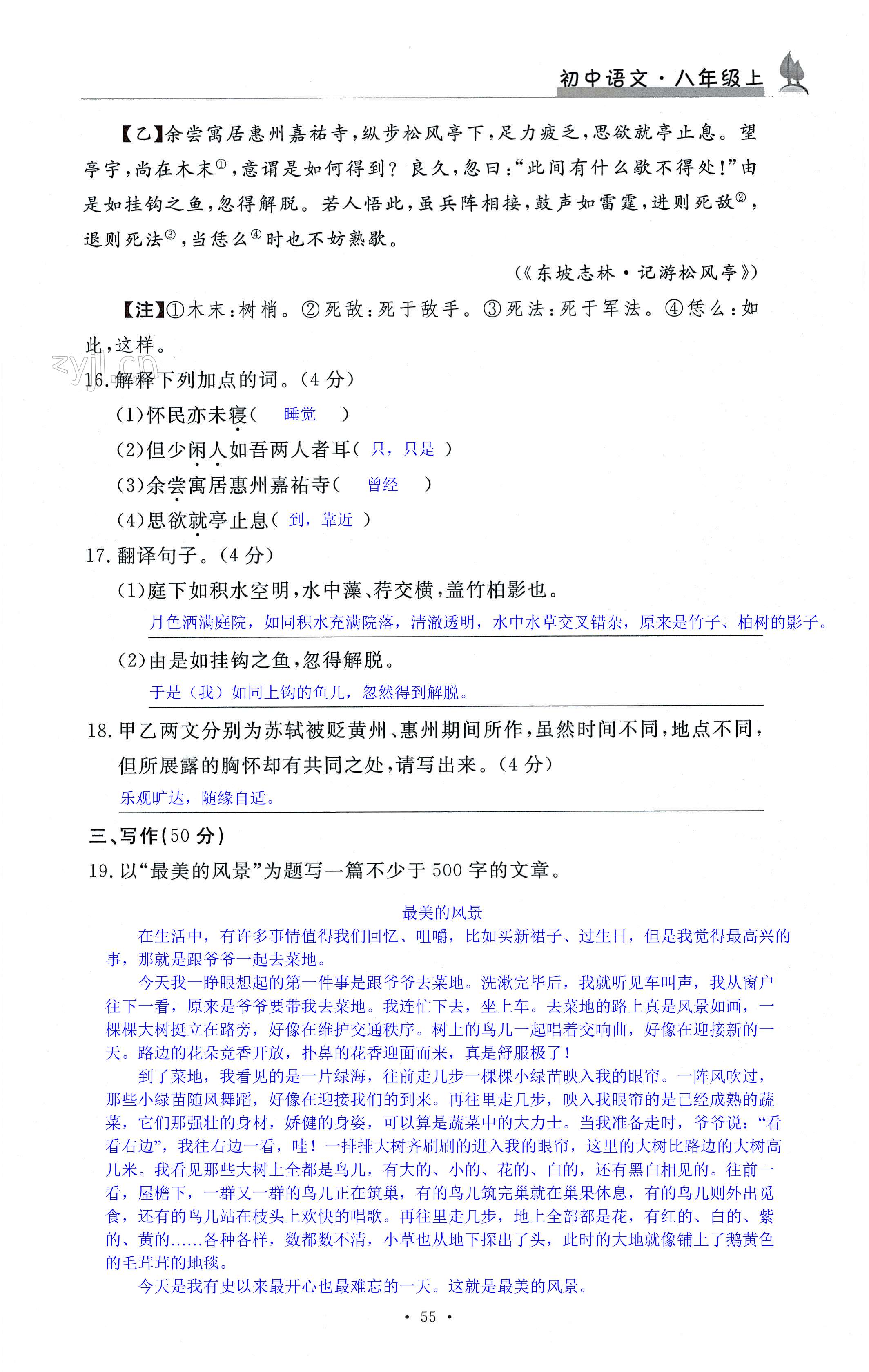 注:目前有些书本章节名称可能整理的还不是很完善,但都是按照顺序排列的,请同学们按照顺序仔细查找。练习册 2022年课时精练八年级语文上册人教版 答案主要是用来给同学们做完题方便对答案用的,请勿直接抄袭。