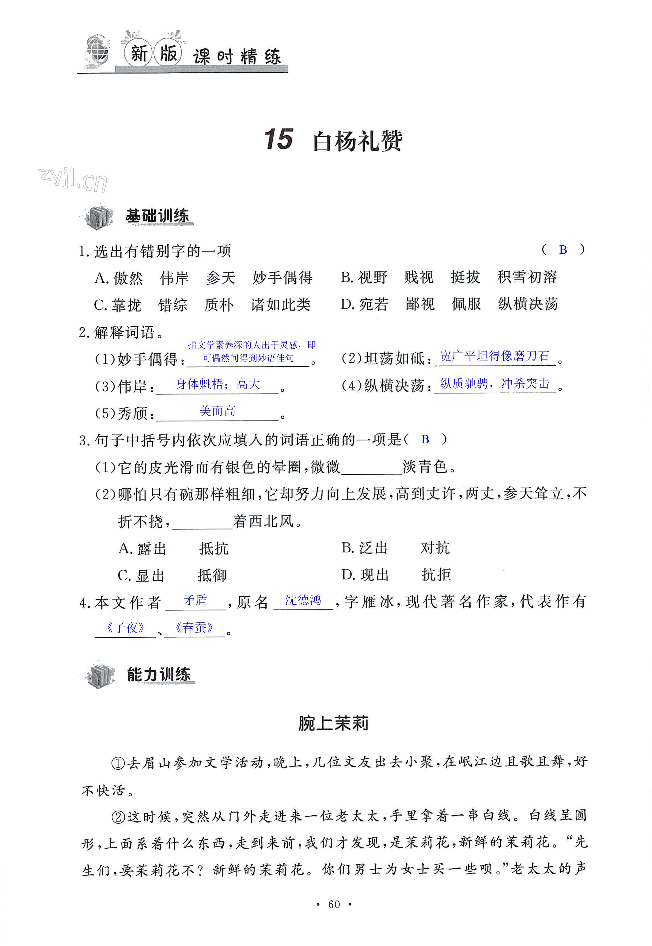 注:目前有些书本章节名称可能整理的还不是很完善,但都是按照顺序排列的,请同学们按照顺序仔细查找。练习册 2022年课时精练八年级语文上册人教版 答案主要是用来给同学们做完题方便对答案用的,请勿直接抄袭。