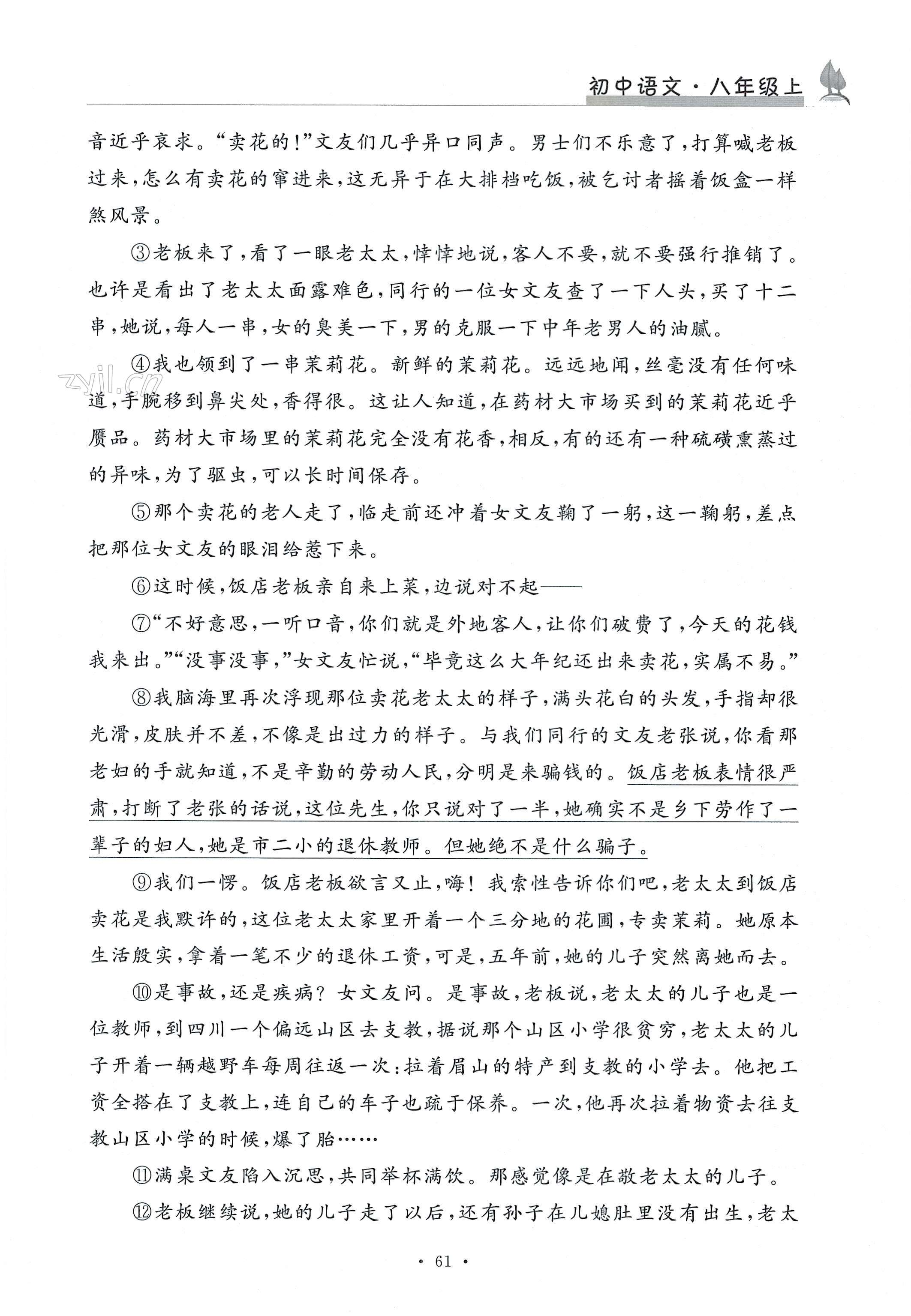 注:目前有些书本章节名称可能整理的还不是很完善,但都是按照顺序排列的,请同学们按照顺序仔细查找。练习册 2022年课时精练八年级语文上册人教版 答案主要是用来给同学们做完题方便对答案用的,请勿直接抄袭。