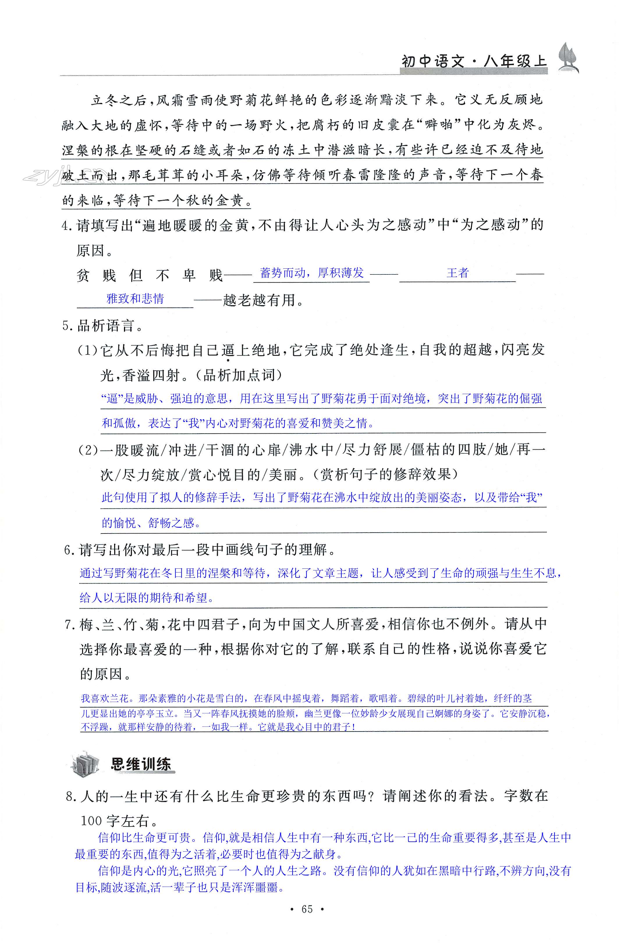 注:目前有些书本章节名称可能整理的还不是很完善,但都是按照顺序排列的,请同学们按照顺序仔细查找。练习册 2022年课时精练八年级语文上册人教版 答案主要是用来给同学们做完题方便对答案用的,请勿直接抄袭。