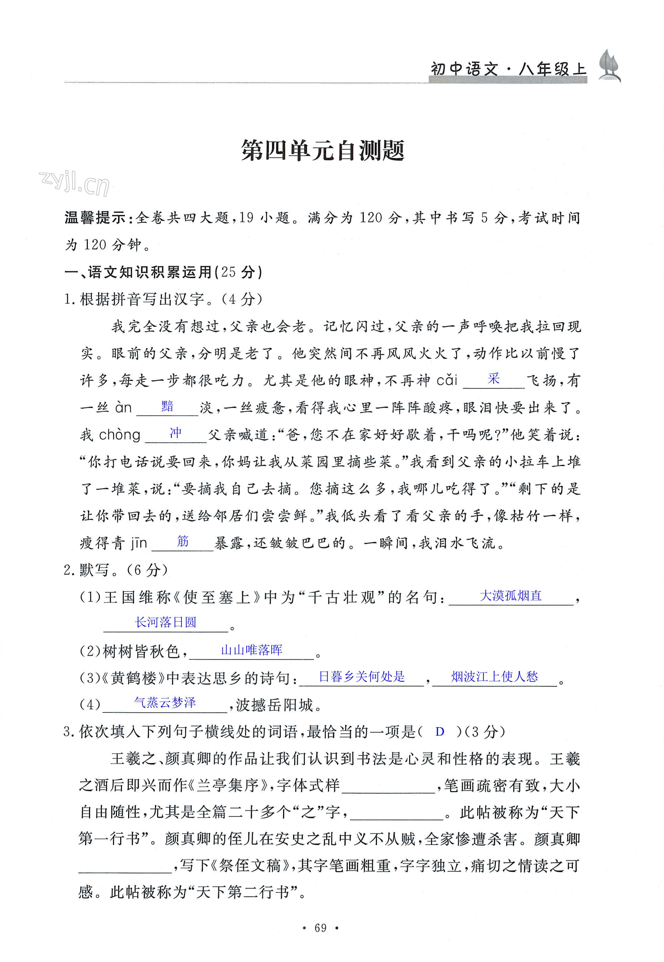 注:目前有些书本章节名称可能整理的还不是很完善,但都是按照顺序排列的,请同学们按照顺序仔细查找。练习册 2022年课时精练八年级语文上册人教版 答案主要是用来给同学们做完题方便对答案用的,请勿直接抄袭。