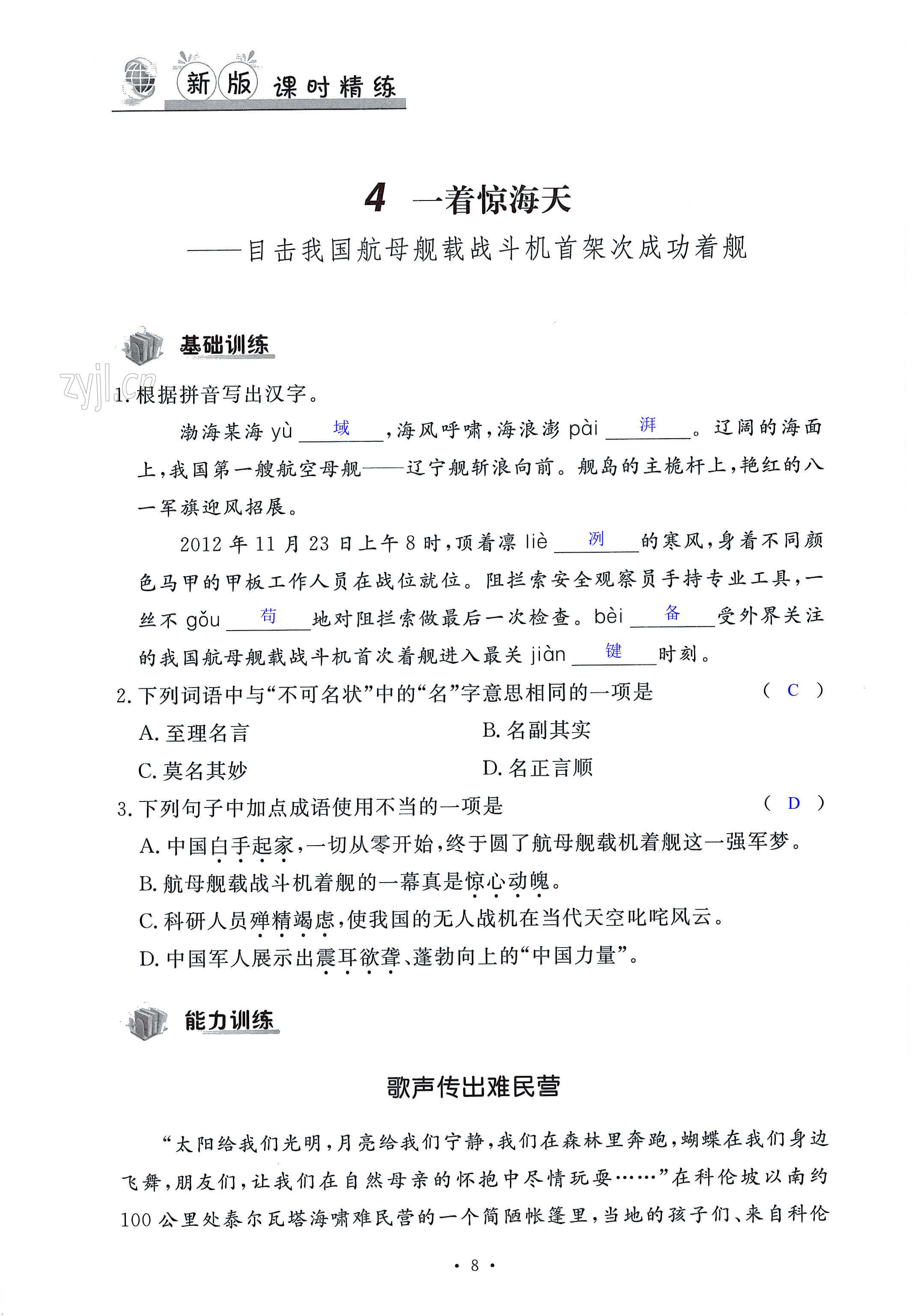 注:目前有些书本章节名称可能整理的还不是很完善,但都是按照顺序排列的,请同学们按照顺序仔细查找。练习册 2022年课时精练八年级语文上册人教版 答案主要是用来给同学们做完题方便对答案用的,请勿直接抄袭。