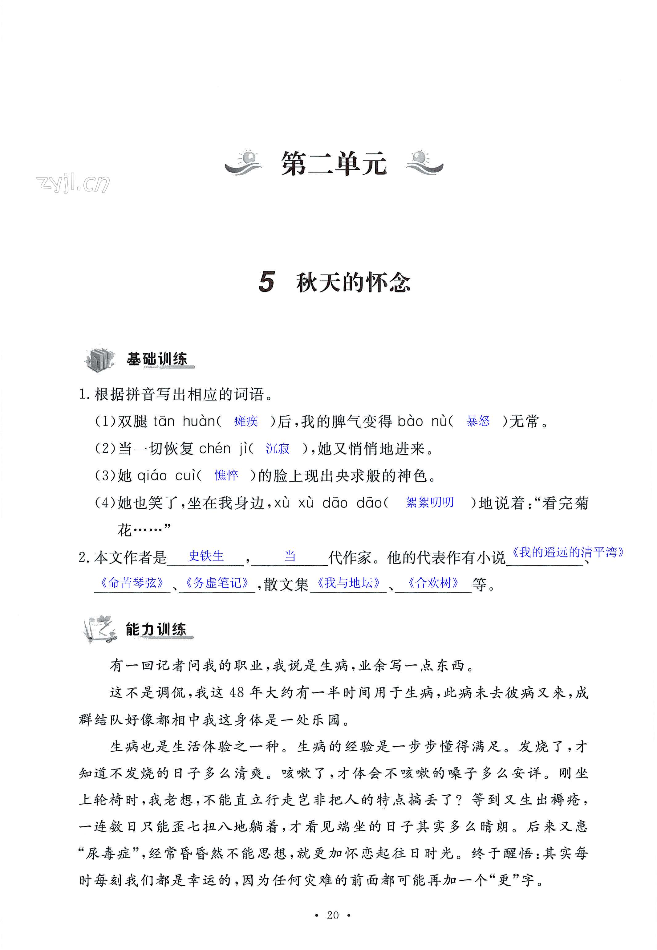 注:目前有些书本章节名称可能整理的还不是很完善,但都是按照顺序排列的,请同学们按照顺序仔细查找。练习册 2022年课时精练七年级语文上册人教版 答案主要是用来给同学们做完题方便对答案用的,请勿直接抄袭。